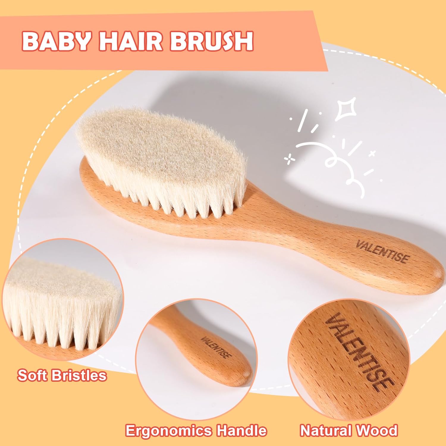 Ergonomic Design:This baby brush set features rounded corners,making it easy to hold and ensuring a comfortable and safe grip while grooming your baby.
