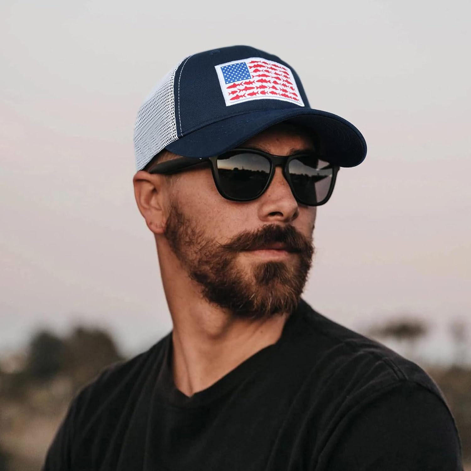 The American flag is always in style.and using fish as the stars in the American flag was very cool and unique. Classic American fishing hats. Stylish, and classic enough to wear anywhere. It looks fantastic and american-able.
