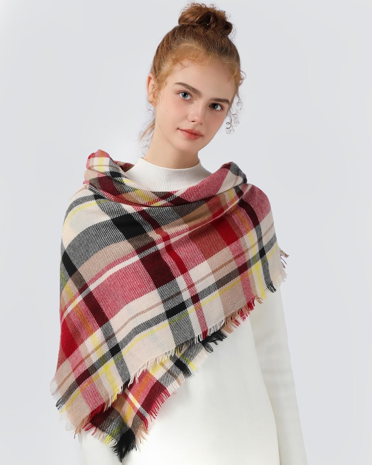 Customers find the scarf soft and well-made, appreciating its beautiful plaid design that can be worn with any color of clothing. The scarf is perfect for fall and winter, with one customer noting it works well in windy or cold conditions. They like its length, with one mentioning it’s versatile for different styles, and consider it good value for money. The thickness receives mixed feedback, with several customers noting it’s quite thin.