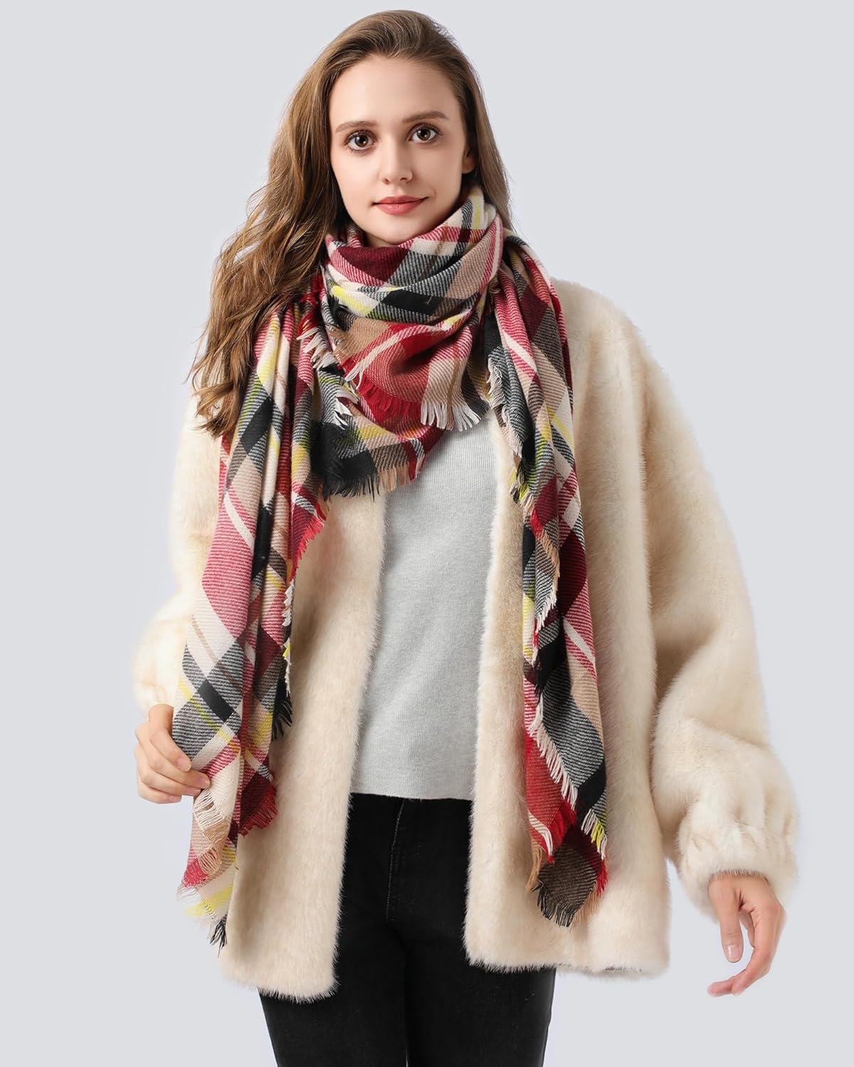 Clothirily Womens Winter Scarf, Fashion Cashmere Feel Plaid Scarfs for Women, Pashmina Shawls and Wraps, Long Blanket Scarf