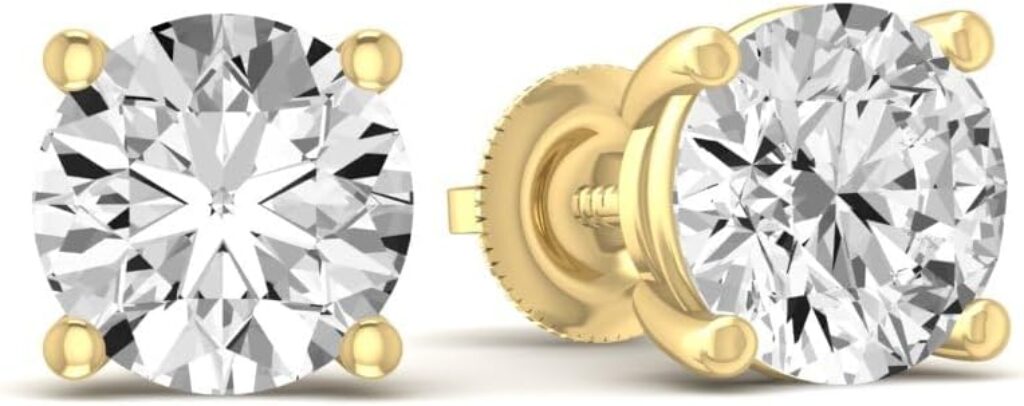 1/2 Carat – 5 Carat Lab Grown Diamond screw back Earrings | 14K Yellow Gold Four prong Lab-Grown Diamond Solitaire Stud Earrings| D-E color and VS1 clarity