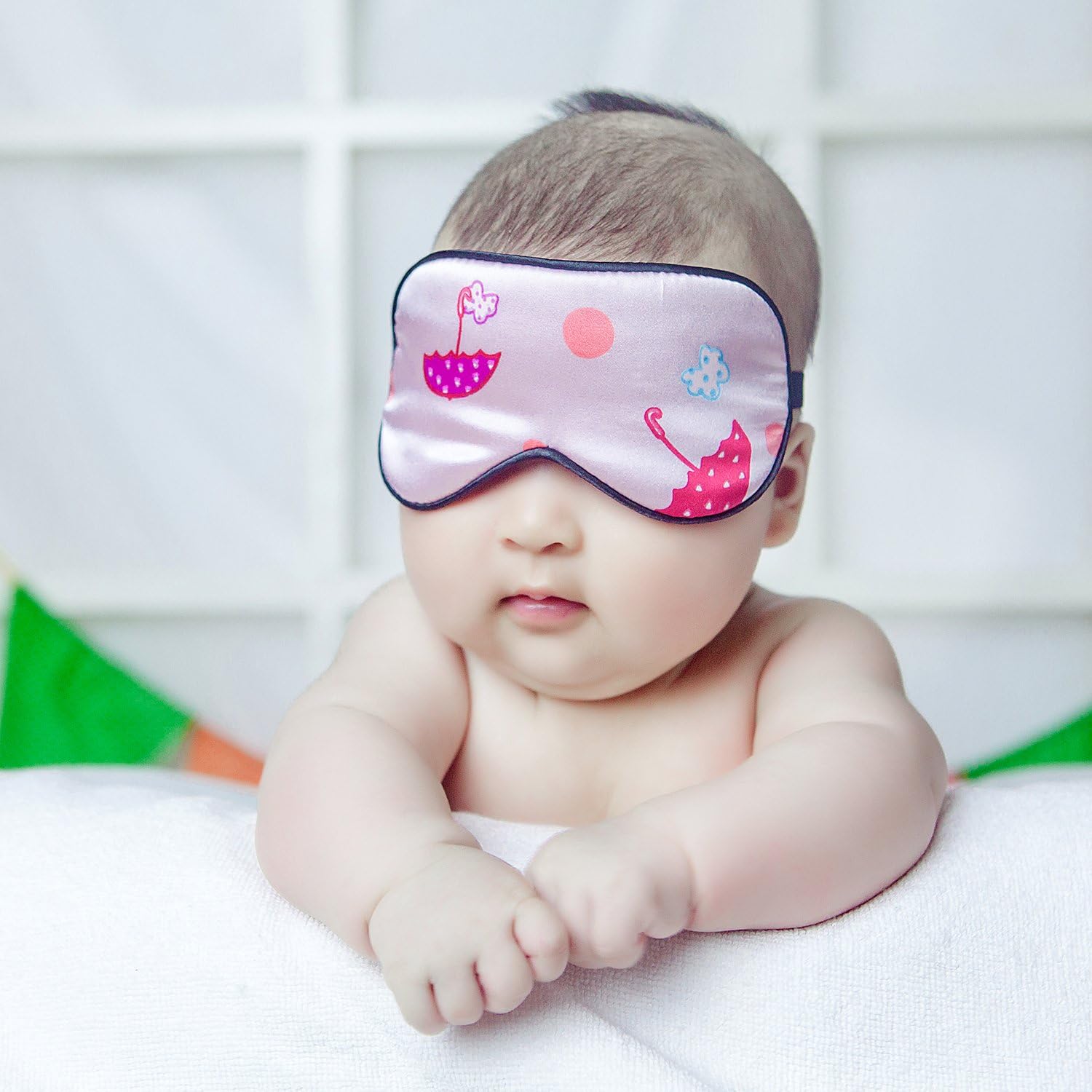 100% Natural Silk Sleep Eye Mask Kids, Cute Night Sleeping Mask with Adjustable Elastic Strap for Newborn (Baby Cute Pink)