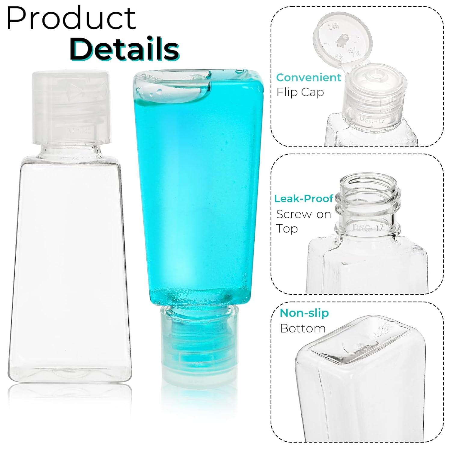 Perfect Travel Partner: Squeezable travel size containers have an excellent sealing, which can prevent leaking when placed in a bag. Compared with wide-mouth bottles, the small outlet is very good for controlling the flow. Additionally, the screw-on top also makes it easy to refill, which is convenient to quickly and efficiently prepare before your travel or business trip