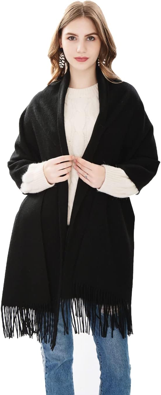 100% Pure Cashmere Scarf, Fringed Edges, Oversized Unisex, Warm & Soft, Solid/Plaid Colors