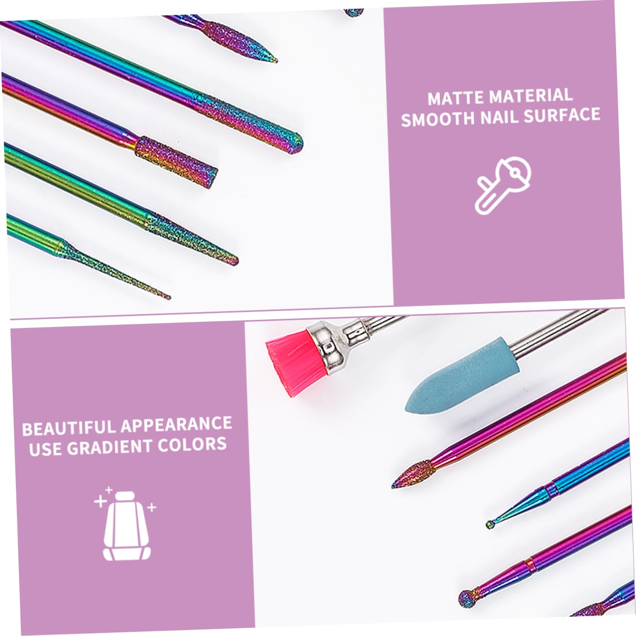 nail grinding heads Suitable for natural nails as well as artificial nails.manicure drill bits Great tools for any professional manicurist or beginner.nail drill tools This simple but practical tool set includes 10pcs nail drill bits.nail drill bits The drill bits are nail art tools that are applicable for nail drill machine. These drill bits are sturdy enough for your use