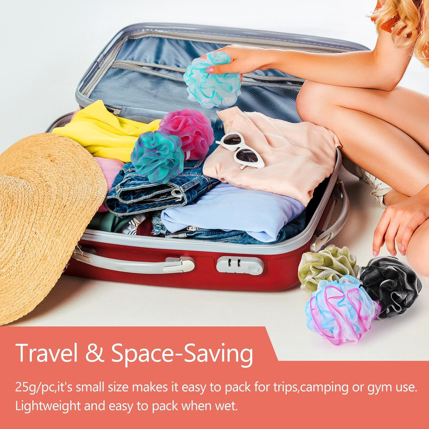 Lightweight & Compact:Fits easily in toiletry bags, gym bags, or carry-on luggage. Takes up minimal space compared to full-sized loofahs. making it easy to carry while traveling