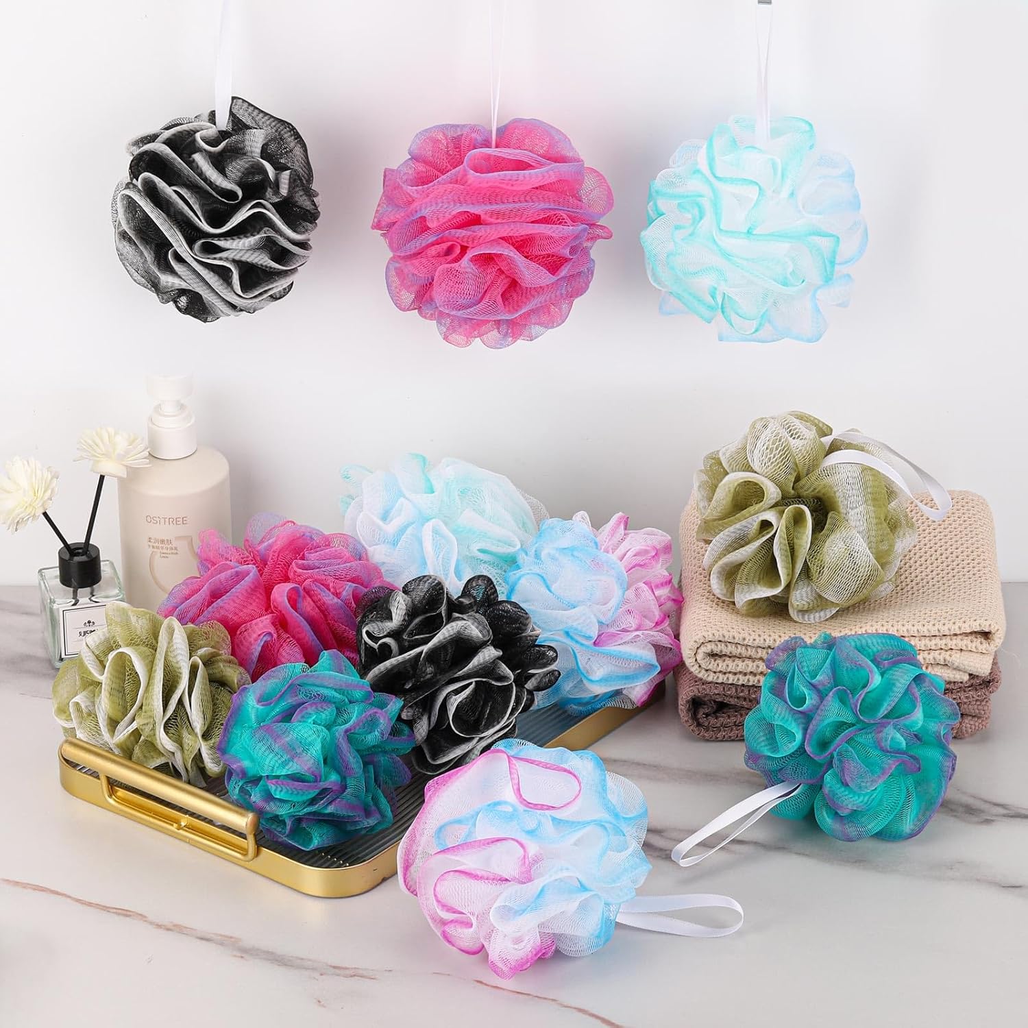 Soft & Gentle on Skin:Made from fine, non-abrasive PE mesh fibers, providing a smooth lather without being too harsh. Resistant to tearing and fraying, lasting longer than natural loofahs