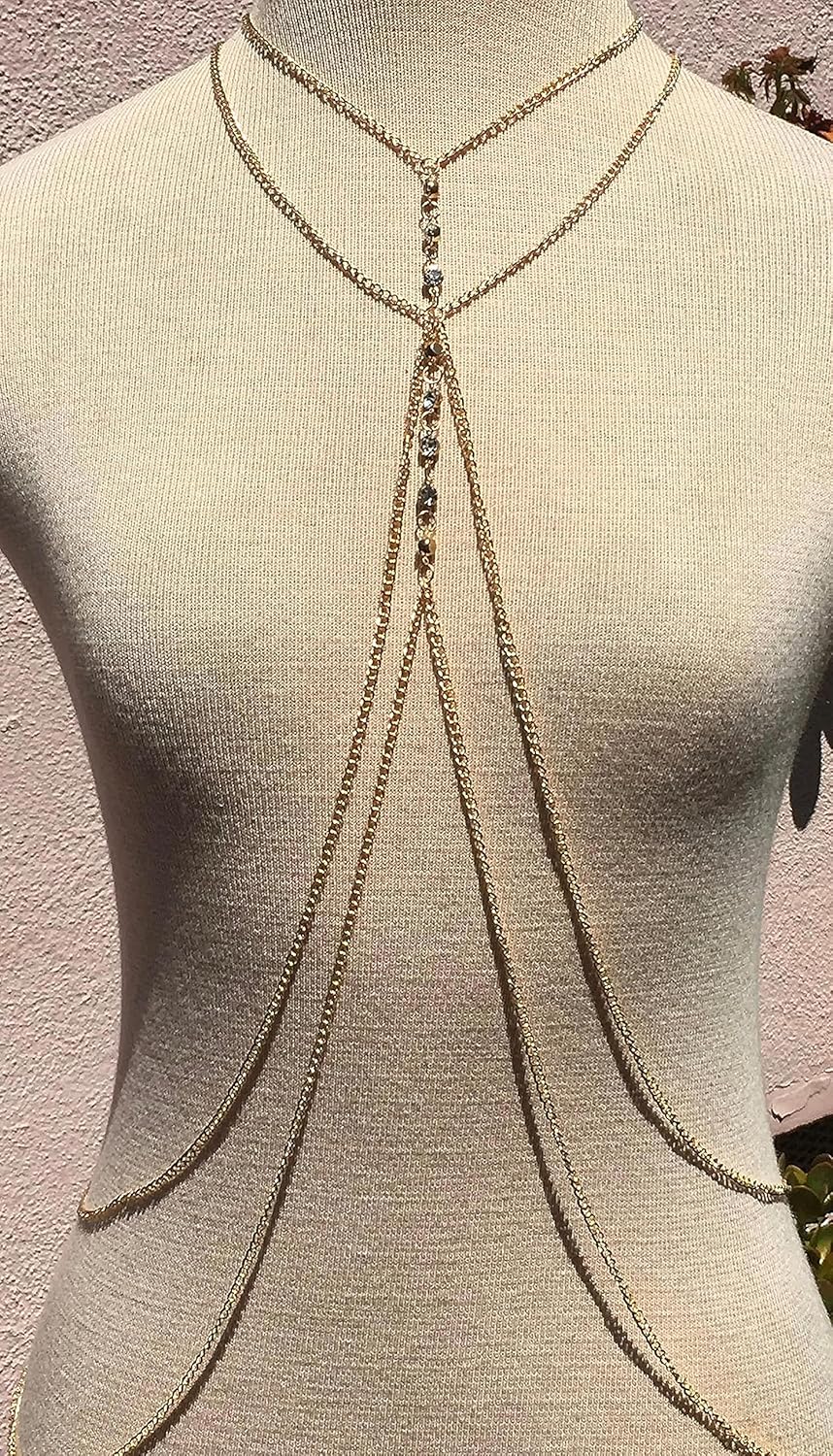 The body chain features sleek and minimalist design that adds a touch of elegance and style to any outfit and create a subtle yet eye-catching accessory.
