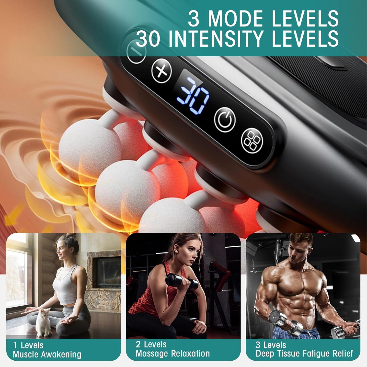【Versatile Treatment Modes】With 30 intensity levels and intelligent adjustment options, this muscle massage gun can effectively target specific muscle groups. Whether you need deep tissue treatment or gentle relaxation, our device provides multiple solutions tailored to your recovery and relaxation needs.