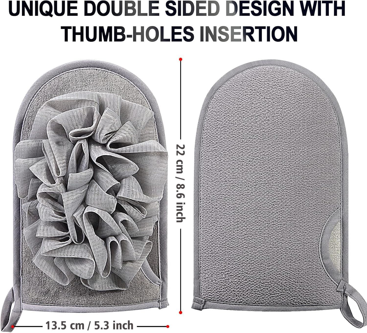 【Bath Sponge-2 Sides USE】 The exfoliating glove is with double-sided design; one side with special exfoliating side for cleaning your body and removing dirt, while the other side with for massaging and deep exfoliation. This allows for a comfortable massage to promote blood circulation, relieve stress, deep clean.