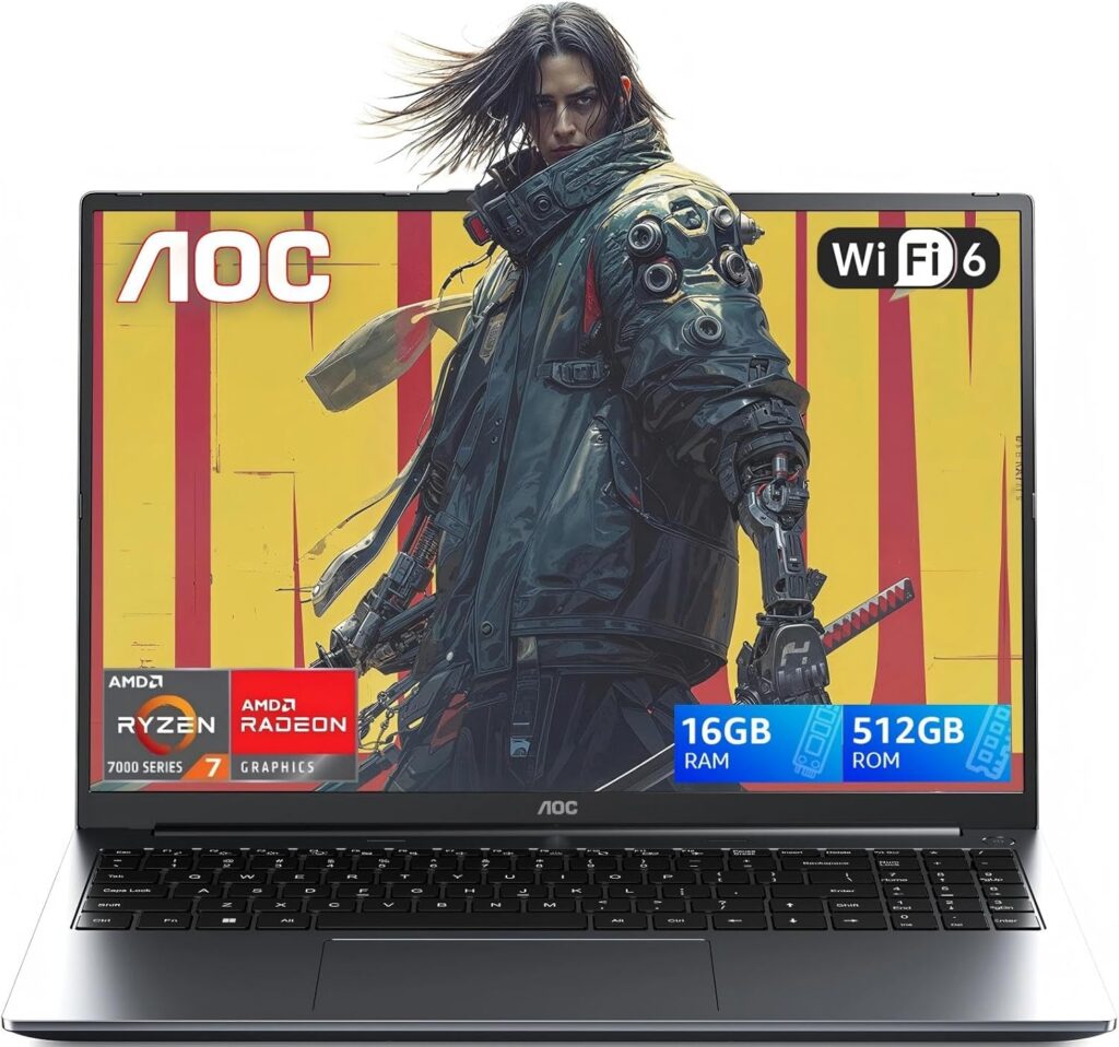 2025 AMD Gaming Laptop, 16 inch Laptop with AMD Ryzen 7 7735HS Processor (8C/16T, up to 4.75GHz), 16GB DDR5 512GB NVMe SSD Work Laptop, FHD Display, Metal…