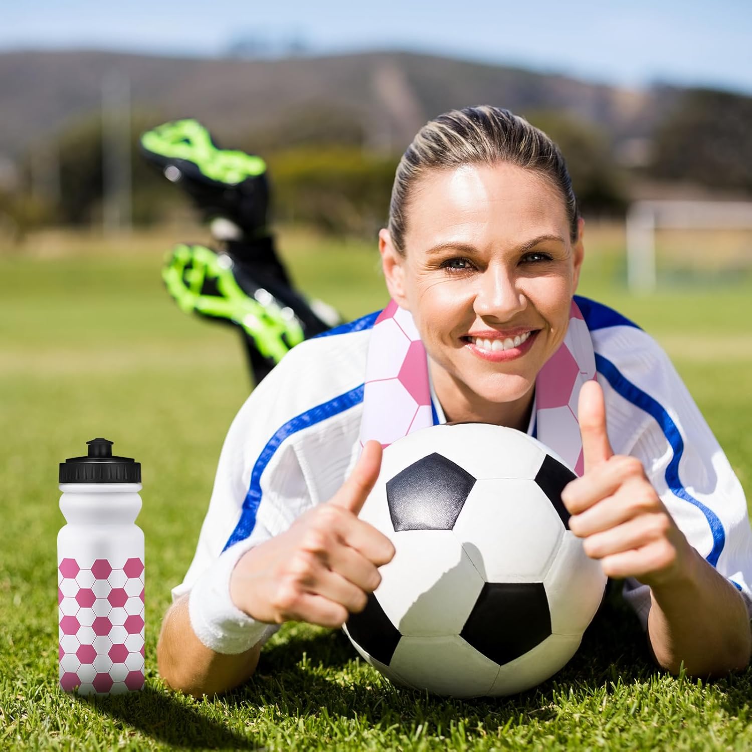 24 Pack Pink Soccer Party Favors for Women Girl 12 Pcs 20 oz Plastic Sport Water Bottles Bulk 12 Pcs 40″x12″ Cooling Towels Breathable Chilly Towel for Soccer Party Supplies Team Gift