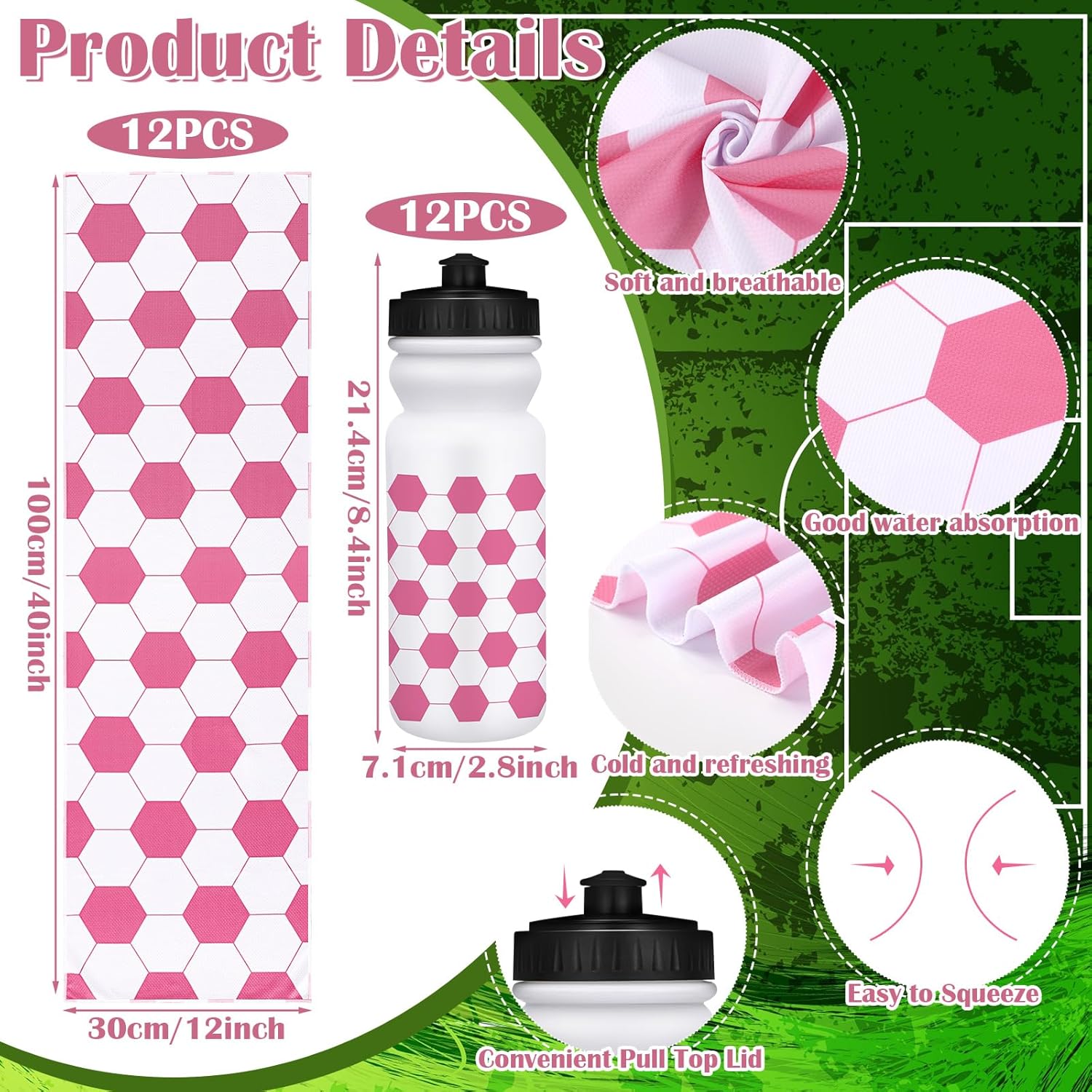 Soccer Gift Set: receive 12 charming soccer water bottles and 12 microfiber cooling towels, making it an ideal combination for parties; Share these sporty gifts with teammates, colleagues, or neighbors and meet your diverse needs effortlessly