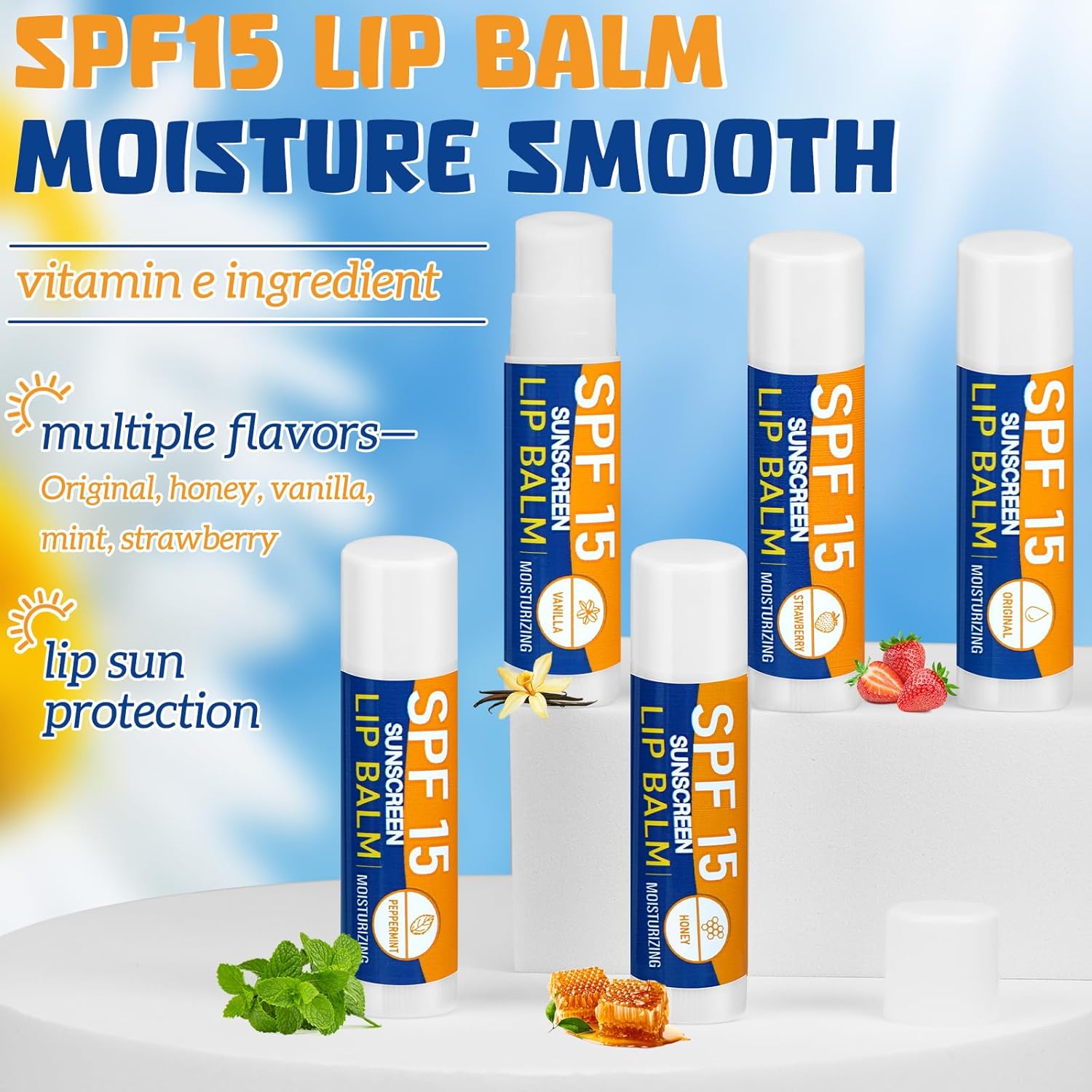 Uv Protection for Your Lips: don’t leave your lips unprotected in the sun; These lip balms boast SPF 15 coverage, providing a layer of defense against harmful UV rays; Ideal for dental office goers, party, and outdoor workers, this lip balm offers a vital protection against potential sun hurts and burns