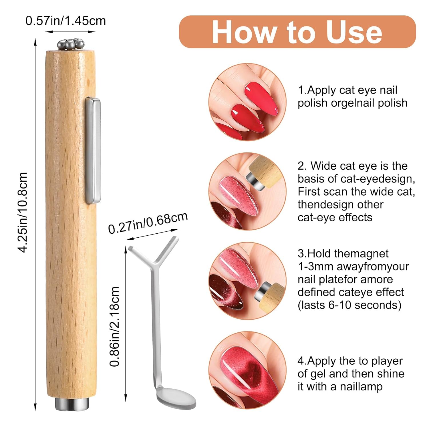 【Appropriate Sizes】The size of this nail art pens is 4.25 × 0.57× 0.57 inches/10.8× 1.45 × 1.45 cm. Designed to be compact and lightweight, this cat eye magnet is the perfect portable companion for creating a cat eye effect anytime, anywhere. Slip the cat nail design tools into your cosmetic bag and enjoy the magical experience of achieving salon-quality nail art on the go.