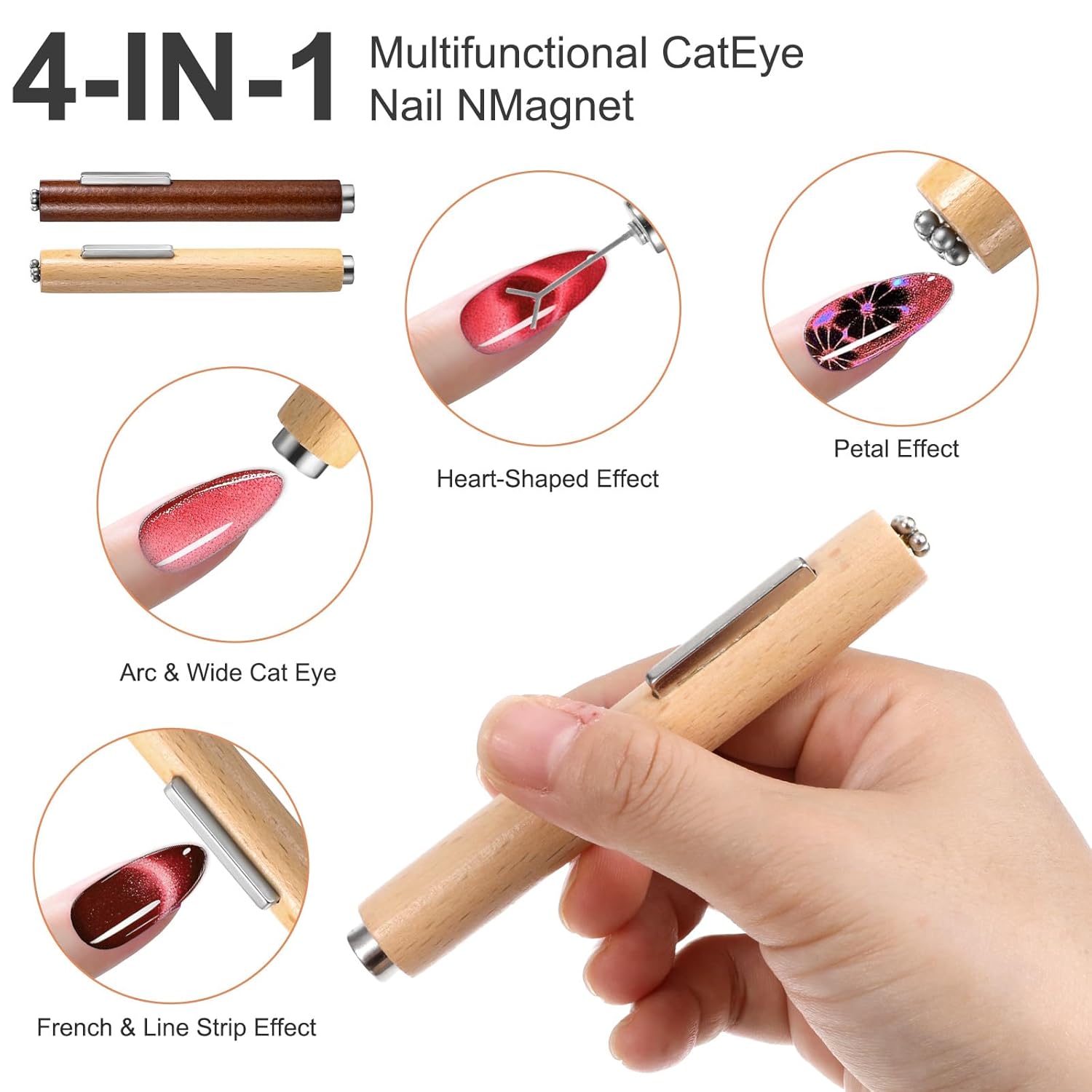 【Easy to Apply】Whether you’re a professional nail artist or nail enthusiast, you can easily achieve a stunning cat eye effect by using nail polish pens. Simply apply a layer of cat-eye gel polish, and hold the multi-function strong cat-eye magnet close to the nail (1-3mm away without touching it), for 5-10 seconds, then the desired effect will just show. Don’t forget to immediately cure your nails for 60-120s seconds.