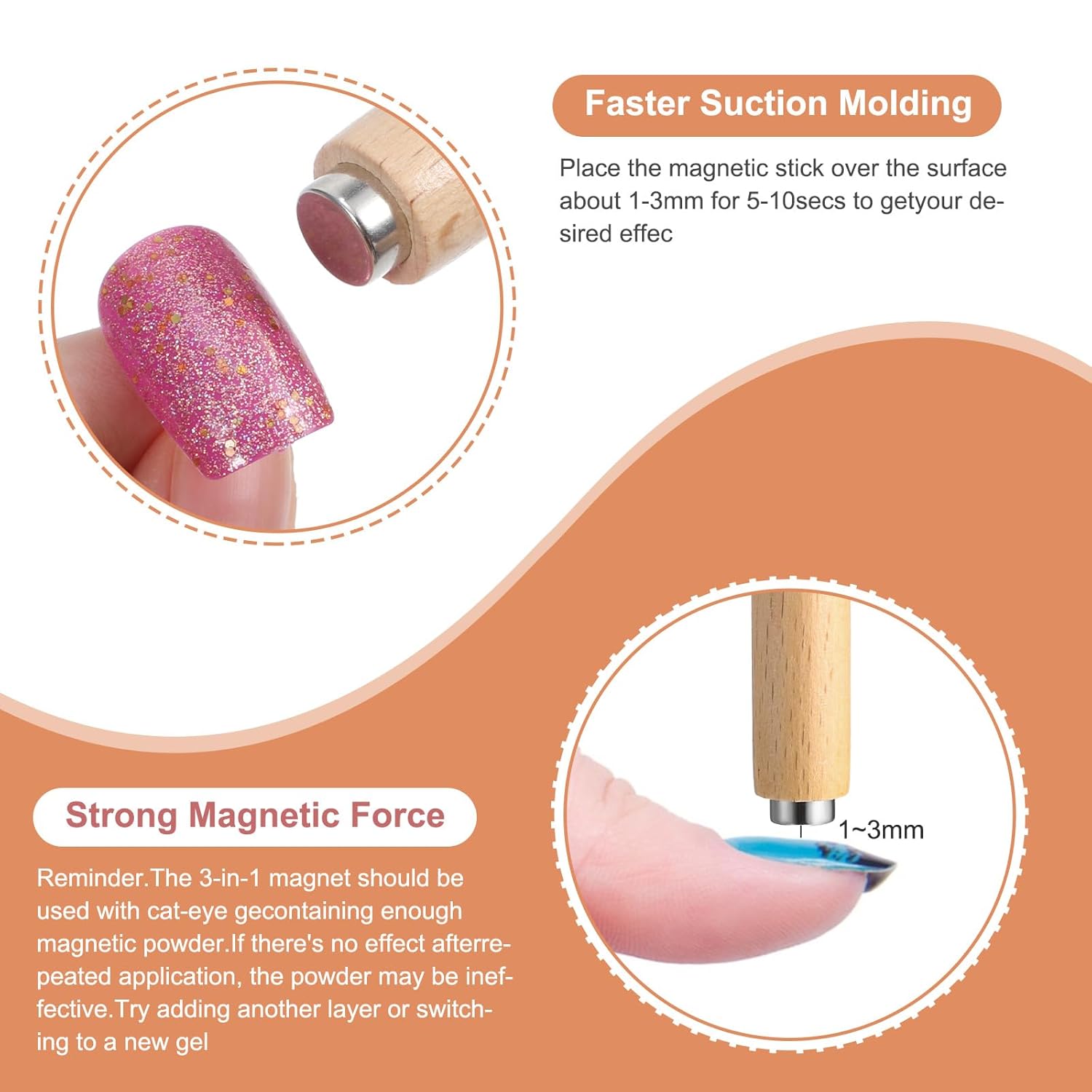 【Premium Material】The 3 in 1 nail magnet is made of high-quality materials, a nail art tool that is safe and durable. The one-piece design of 3d gel nail art tools makes storage and switching functions easier.