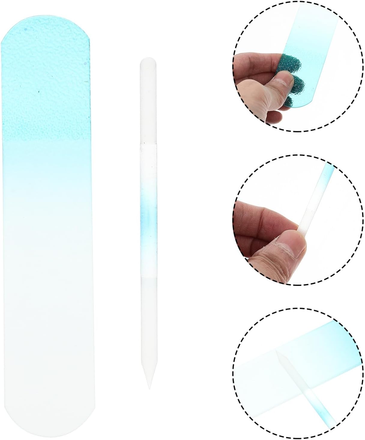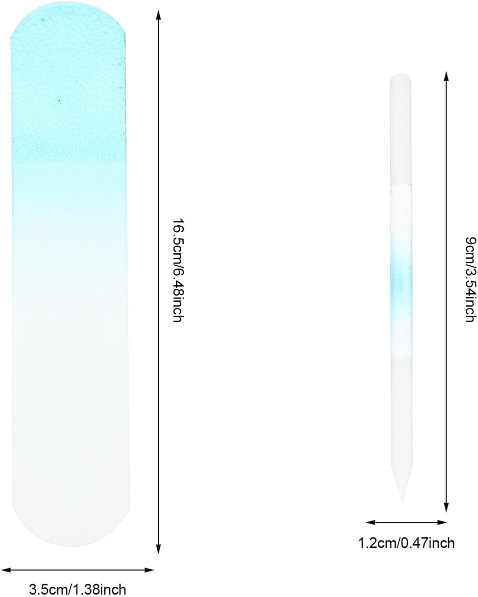 2pcs Professional Glass Nail Files for Women and Portable Nail Care Tools with Sturdy Blue Handles Washable and Manicure Files for Natural and Artificial