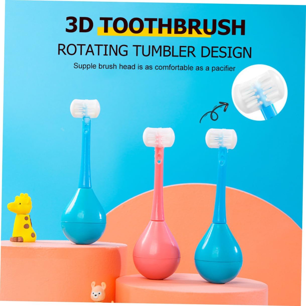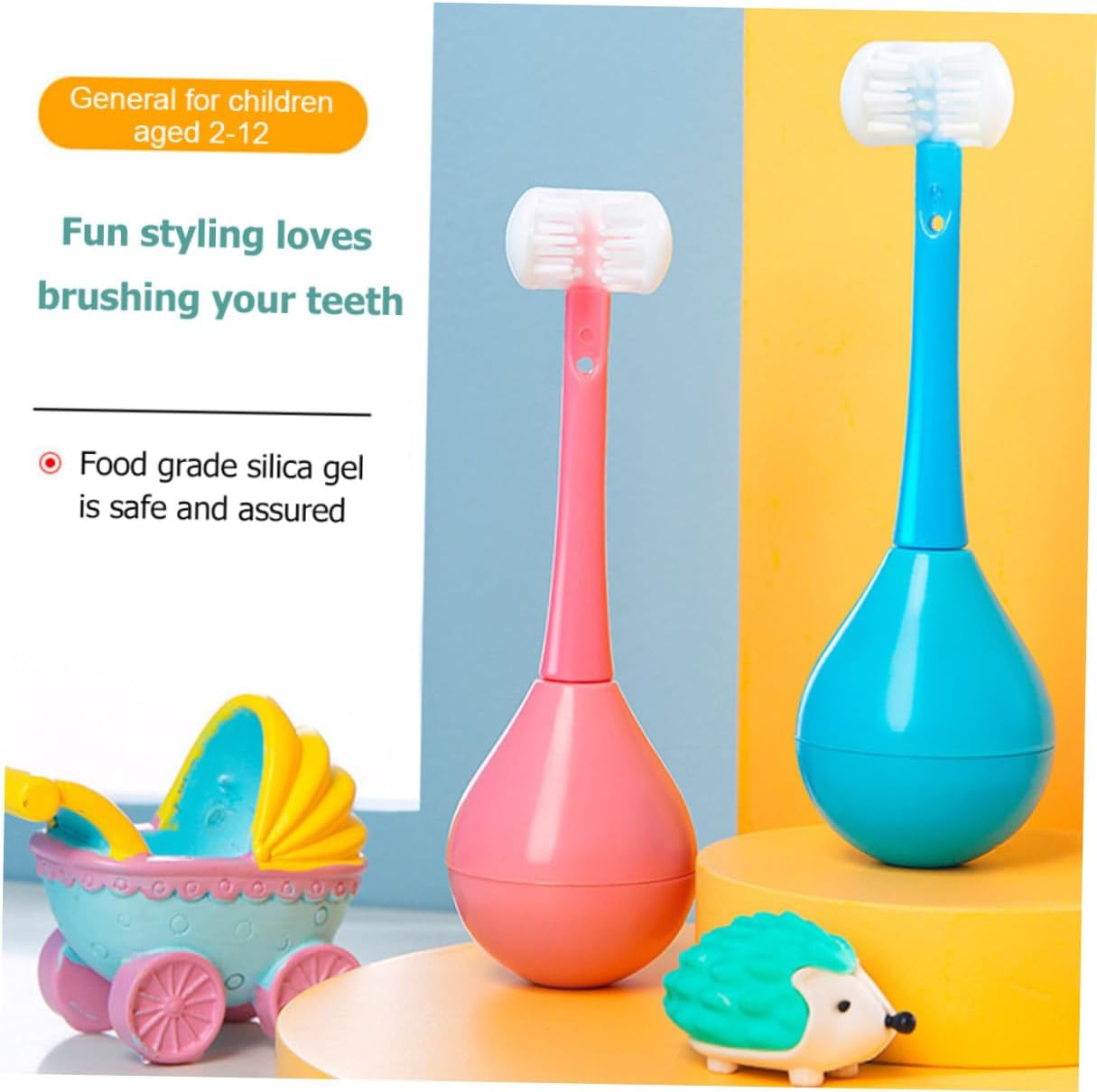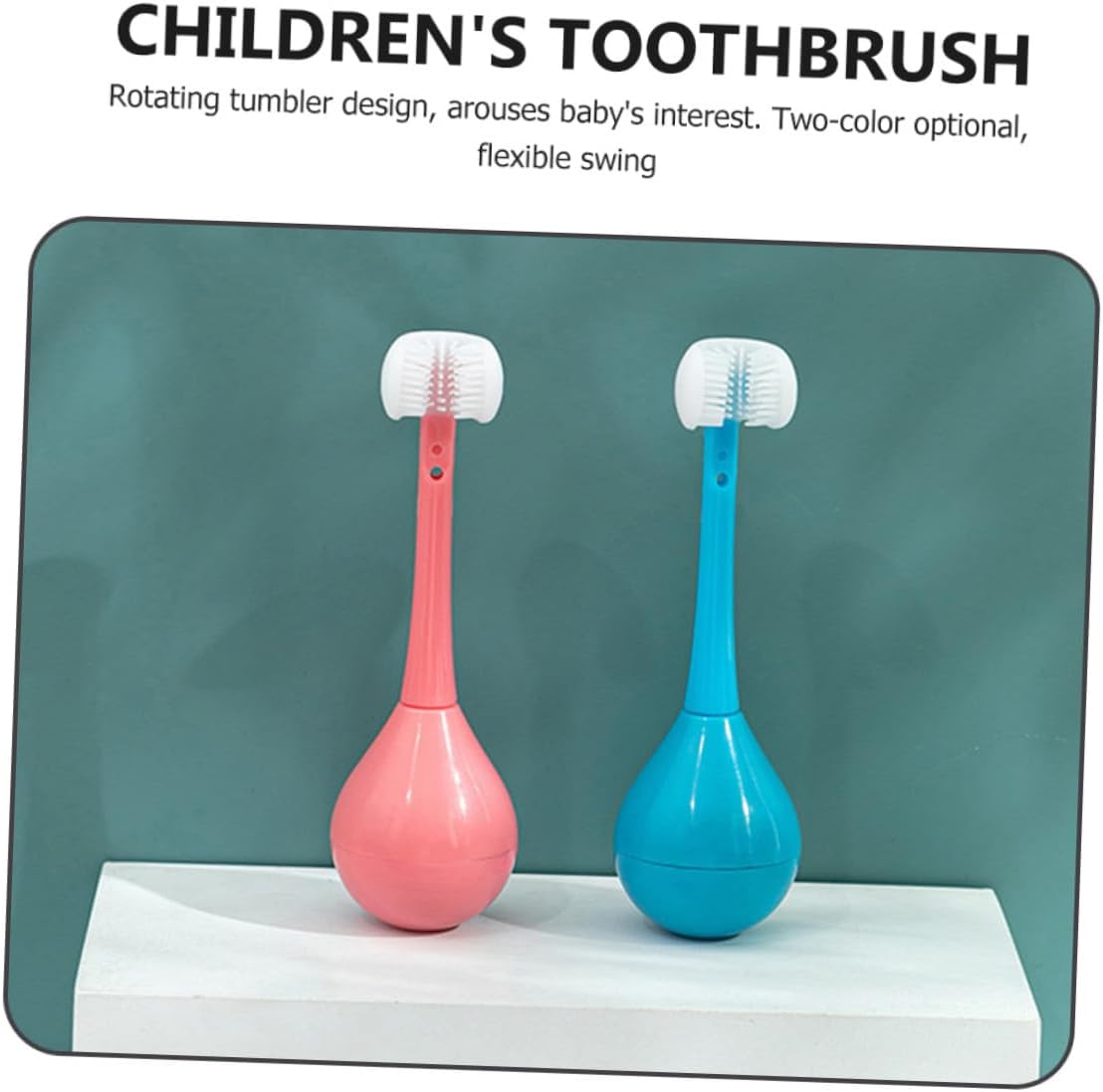 2pcs Soft Bristle Tumbler Toothbrushes for Rounded Oral Care Brush with Cartoon Design Comfortable Deep Cleaning for Teeth Pink Blue