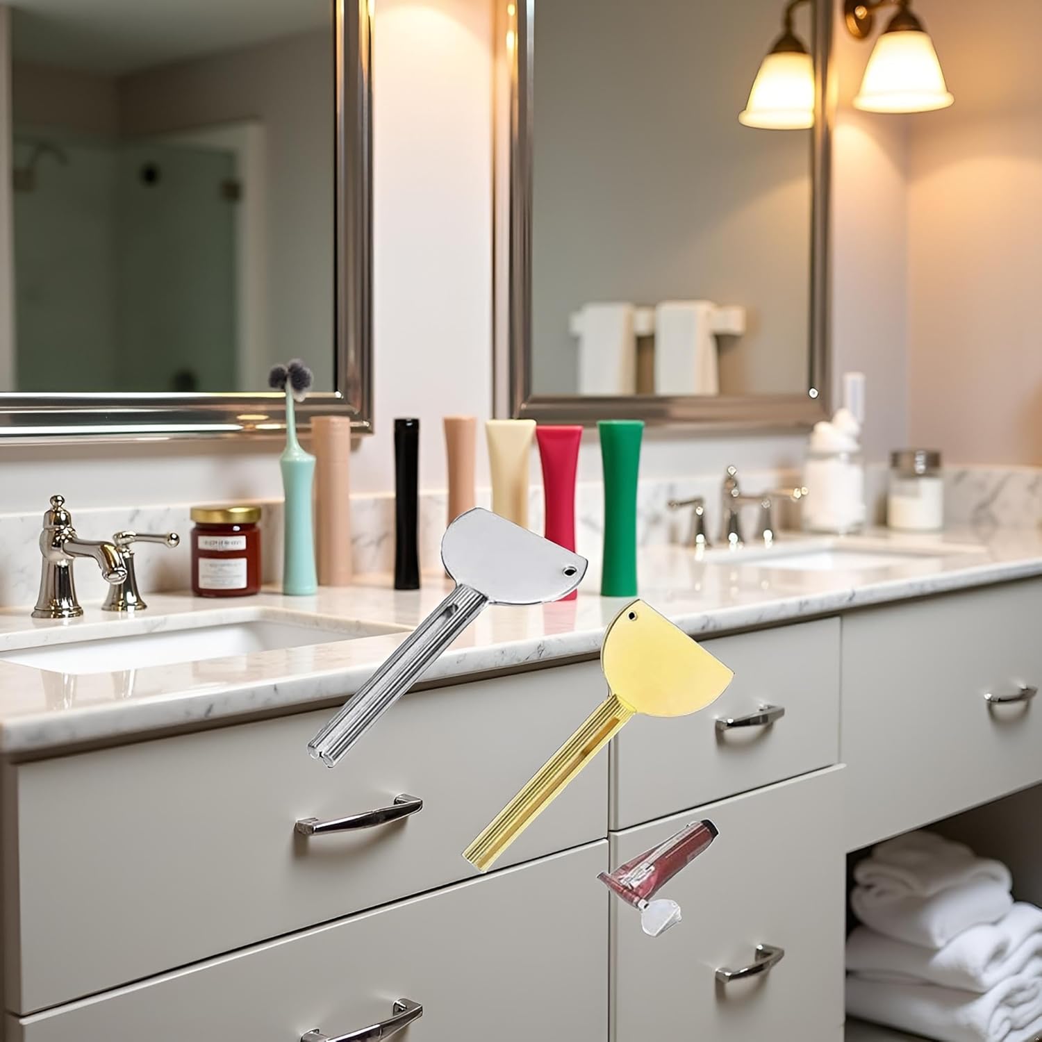 DUAL PACK: Set includes 2 metal tube squeezers in elegant silver and gold finishes for efficient use of toothpaste and other tube products