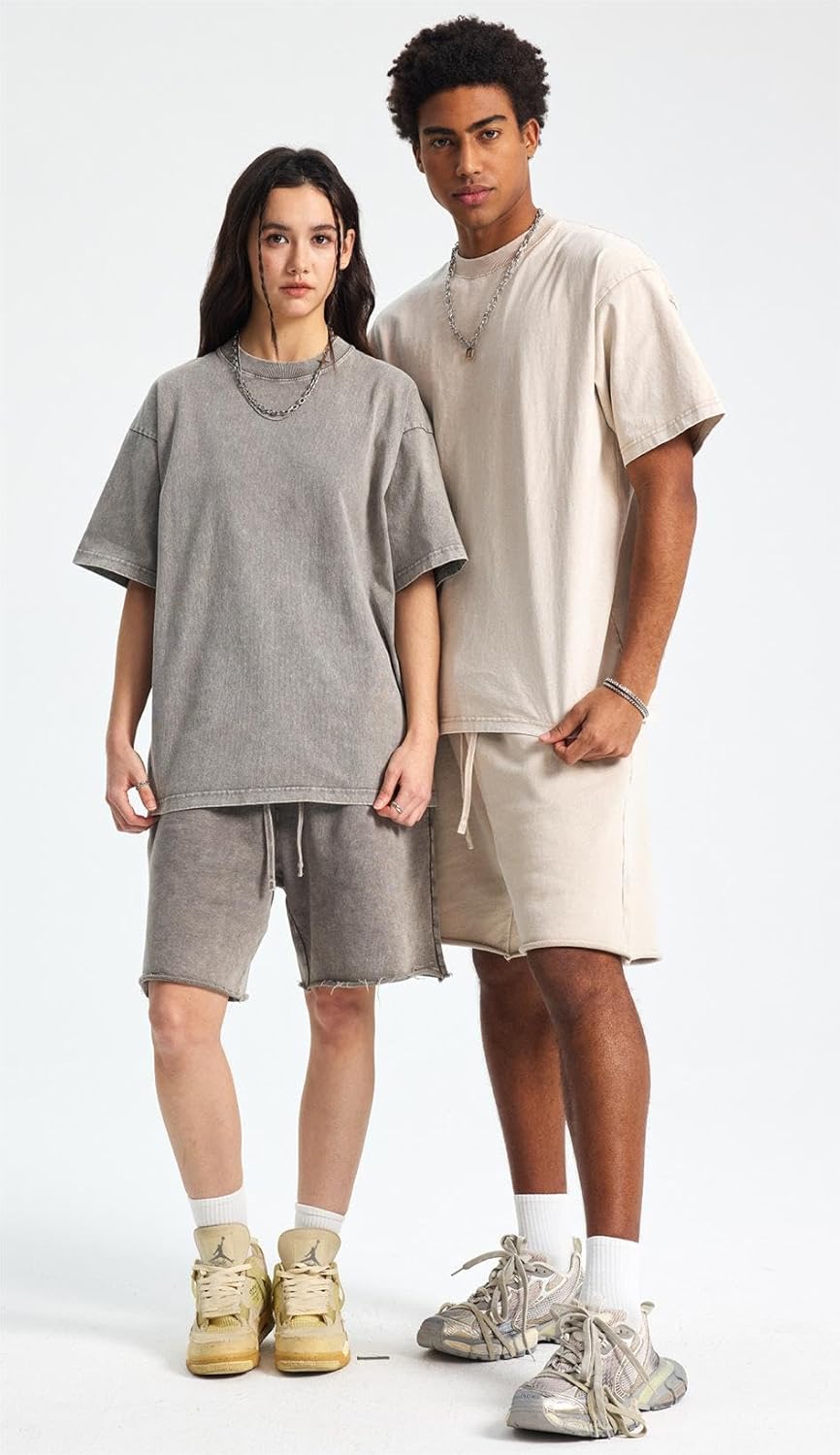 3 Pack Men Oversized T Shirts Cotton Tee Vintage Unisex Short Sleeves Casual Loose Wash Basic Streetwear Baggy Tops