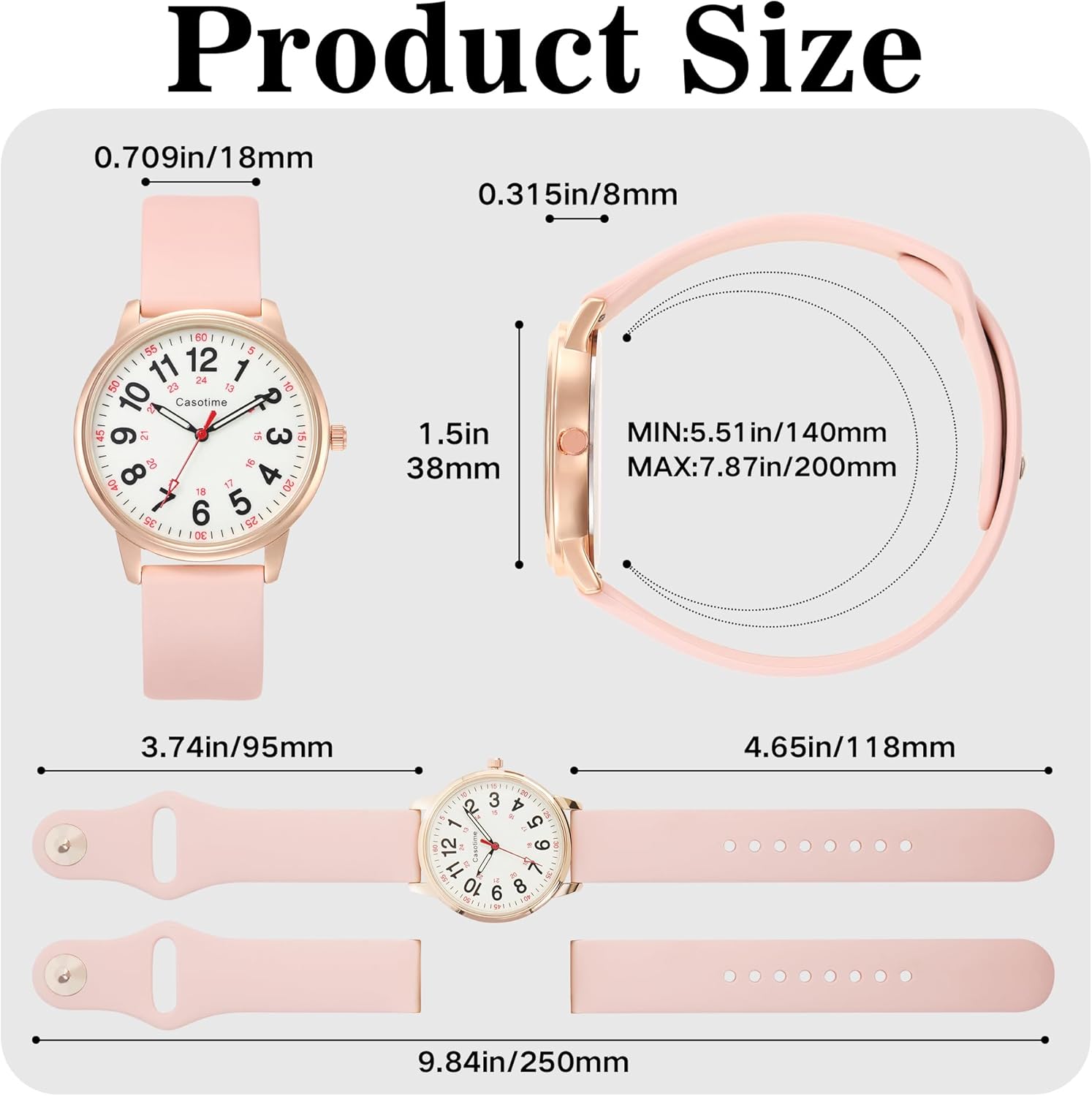 Casotime professional medical watch is specially designed for nurses, doctors, medical students and first aiders. 38mm dial is equipped with high-contrast luminescent system: the oversized scale and hands can continuously emit soft blue cold light after absorbing light, the time system of track system (12-hour + 24-hour military) seamlessly matches with the requirements of medical records and international shifts.30M Waterproof handles daily exposures like handwashing, rain.