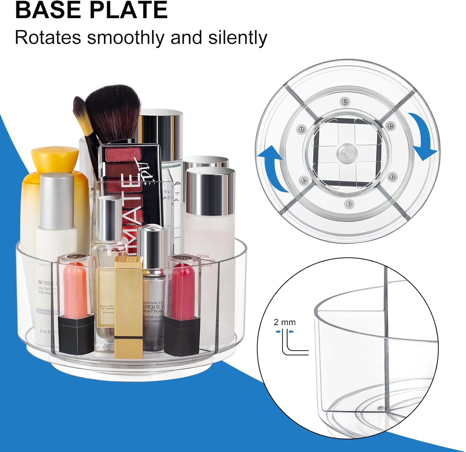 ★Cosmetic Turntable Organizer: The divided spinning organizer made of thick and transparent plastic, which you can see clearly what’s inside and easily get the items you want. It brings you a fashion-forward way to keep your cosmetic, jewelry, makeup brushes, lipsticks skincares, hair care products, perfumes and more organized and easier to find.