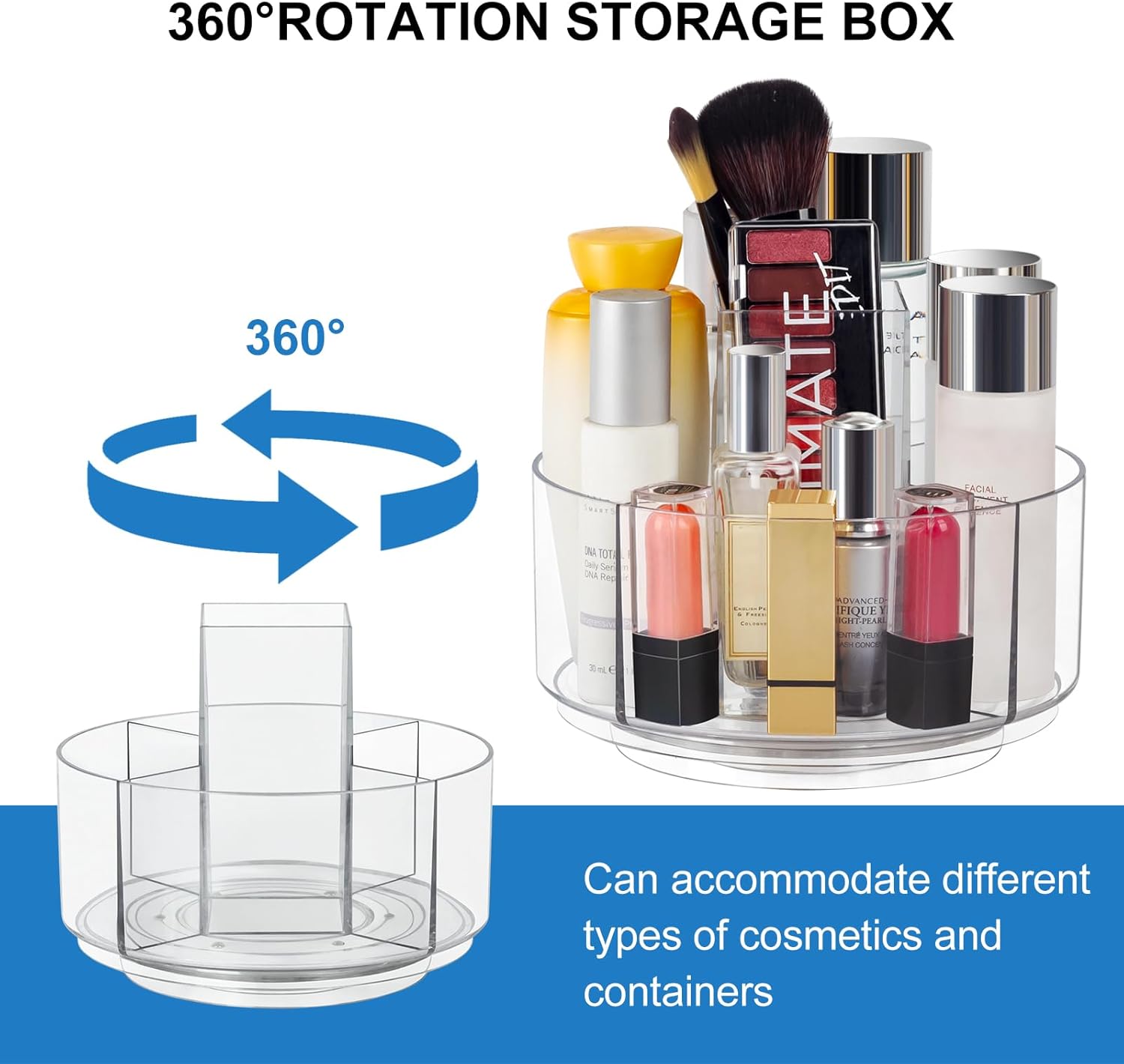 ★360° Rotating Makeup Organizer: with rotating base design, this cosmetic storage box rotates smoothly and silently, perfectly organizes and stores your cosmetics and accessories. Easy access to all of your makeup products. It’s a perfect gift for your friends, family members and any makeup lovers.