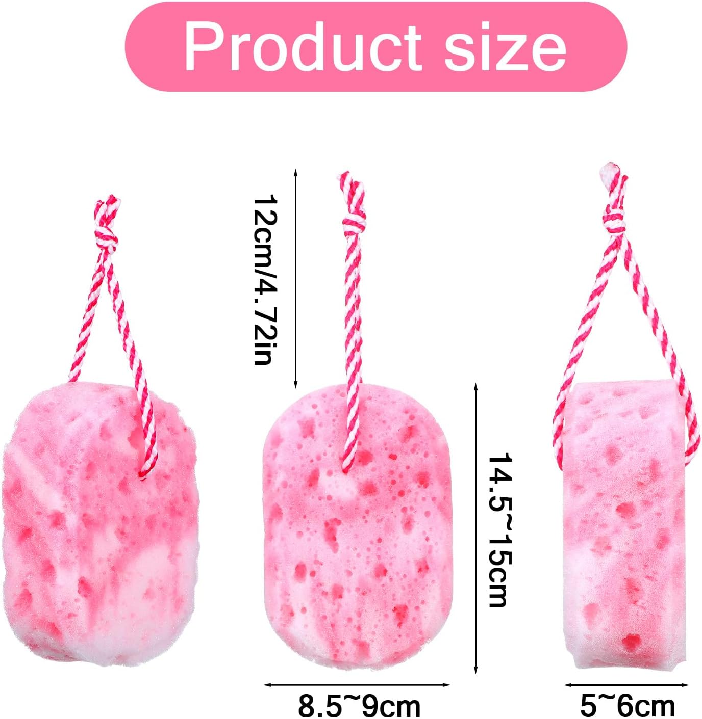 Easy Storage: All body scrub sponges come with a hanging string. The body wash sponge is convenient for drying and storage, the exfoliating sponge for body ensures your bath sponge stays fluffy, and the shower sponges for men are always ready to use. The compact size makes the body sponge ideal for travel