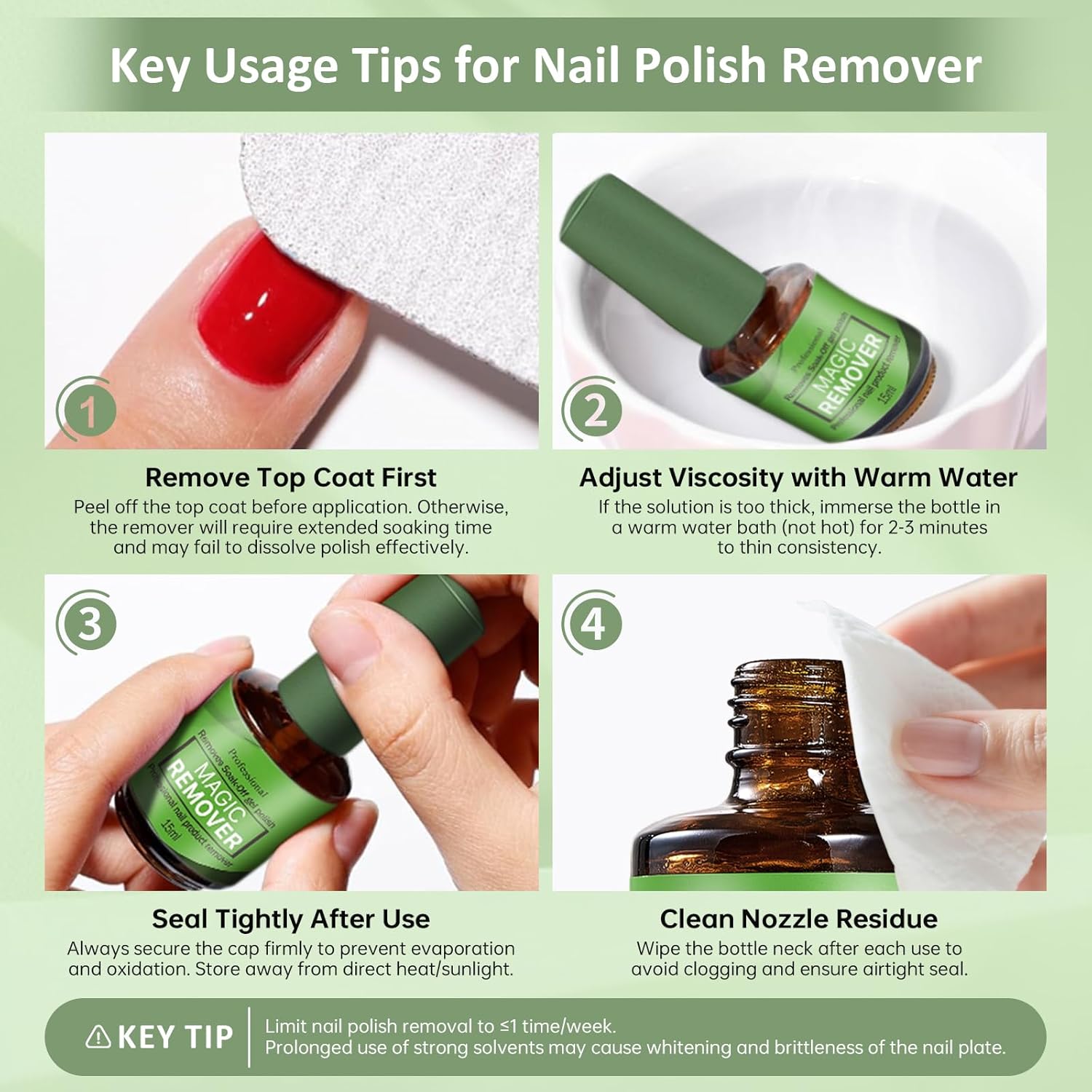 Quickly Remove in 3-5 Minutes:Just lightly smear, and wait for 2-3 minutes, the nail surface will automatically burst, and then remove it gently with a small steel pusher.