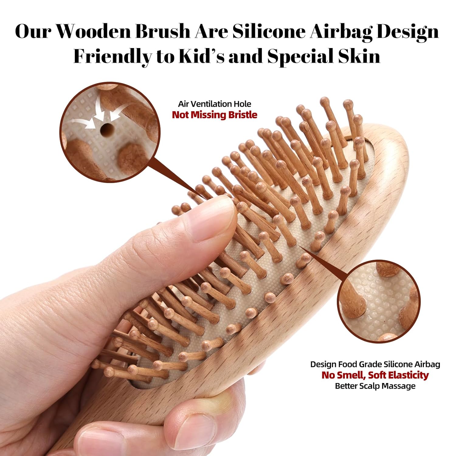 Unique Advantages from Us: Silicone airbag wooden hair brush and 5 extra spare bristles, a cleaning claw can last for 2 more years than others. Wooden bristle hair brushes and portable wooden combs made of pure beech wood, minimizes static, frizzy, knots