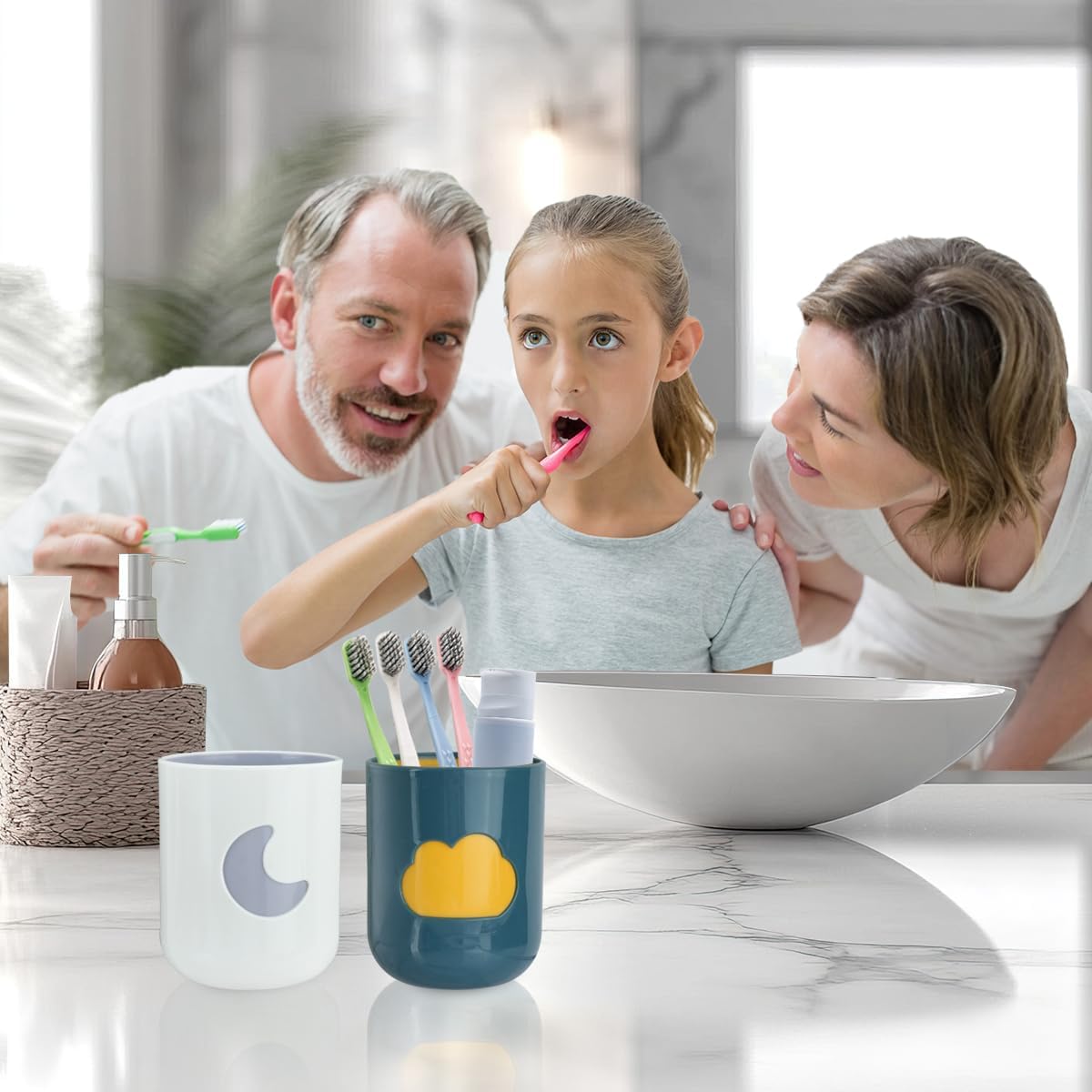 【Fashionable and Elegant】The toothbrush cup is a two-colour design, and a unique moon, star and cloud pattern, which is not only functional, but also a beautiful home decoration, easy to fit into any style and add highlights to your life.