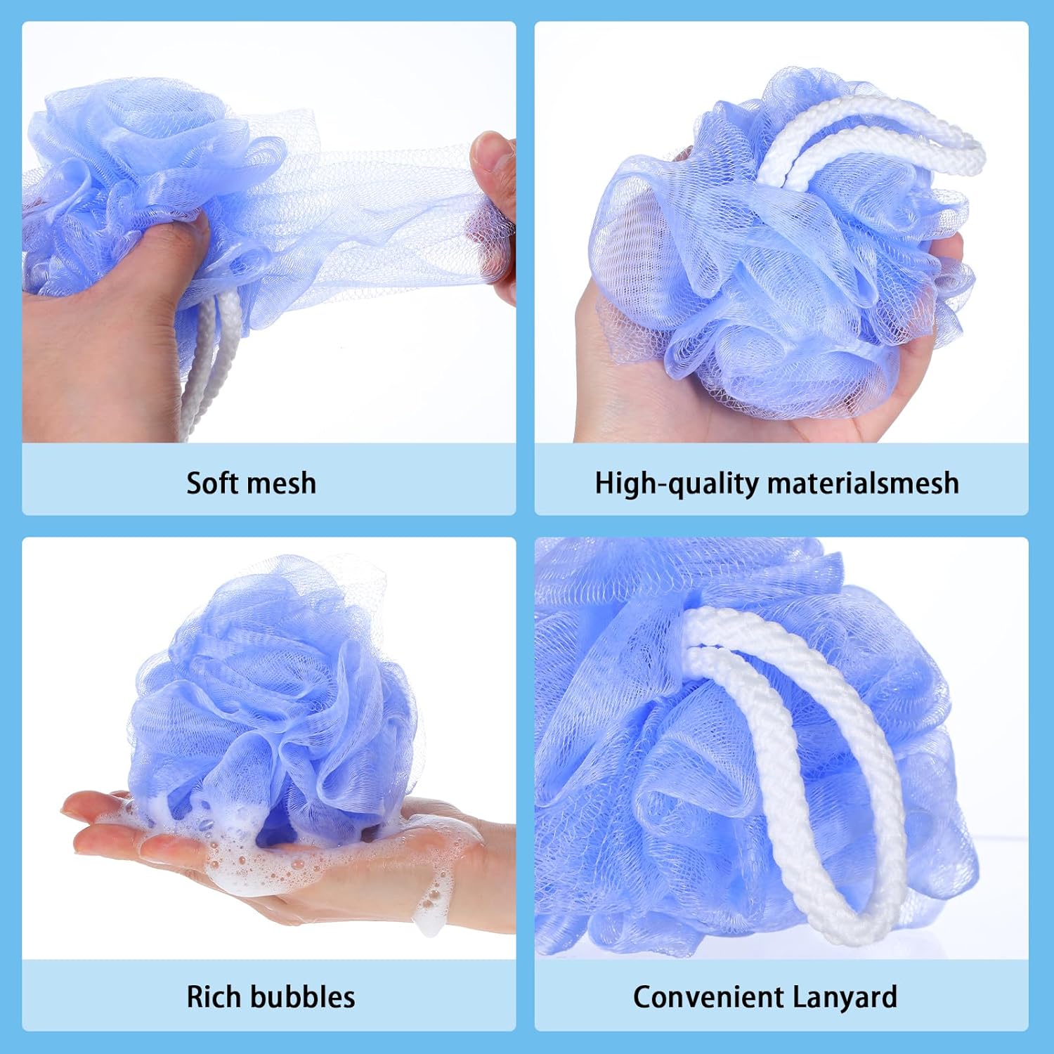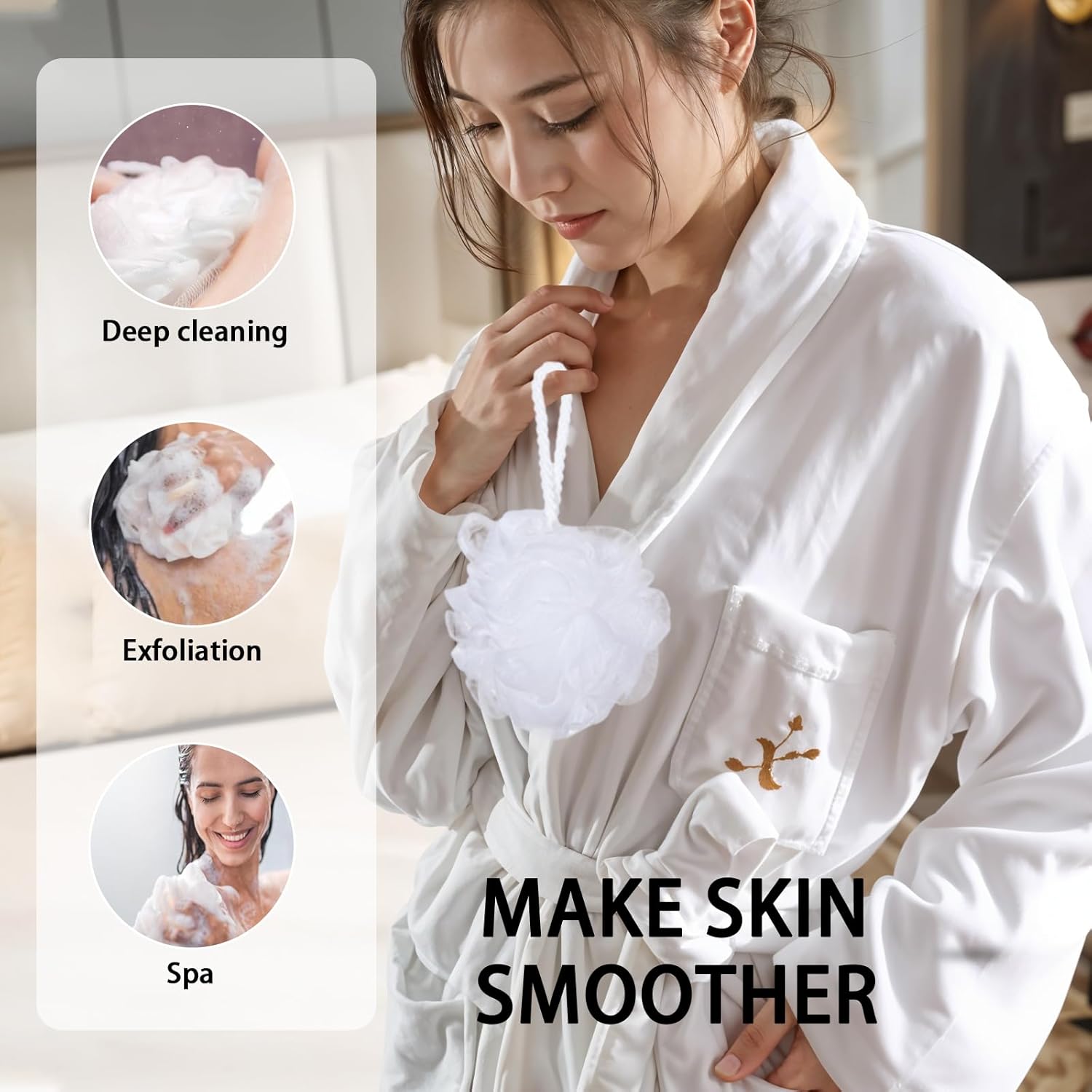 Make Skin Smoother: shower puff can be applied with shower gel or soap, help to create more foams, gently exfoliate skin, clean your skin deeply and thoroughly, making you have smooth skin to some extent