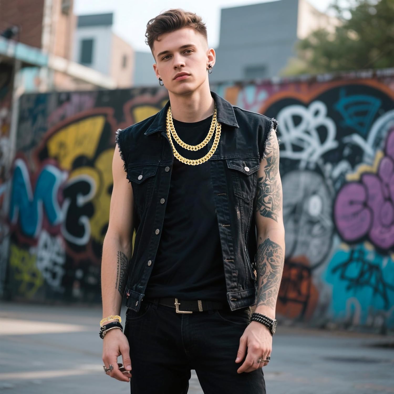 This practical fake gold chain set is not only suitable for people of all ages to wear, but also applicable to various occasions such as birthday parties, ceremonies, anniversaries, carnivals, receptions, hip-hop fashion shows, etc., and can meet your individual needs. This adjustable necklace is a perfect necklace for both men and women and can change your style and mood in any situation. This hip hop jewelry men can be given as a gift to family members, friends and loved ones. The hip-hop style can showcase your personality and taste.