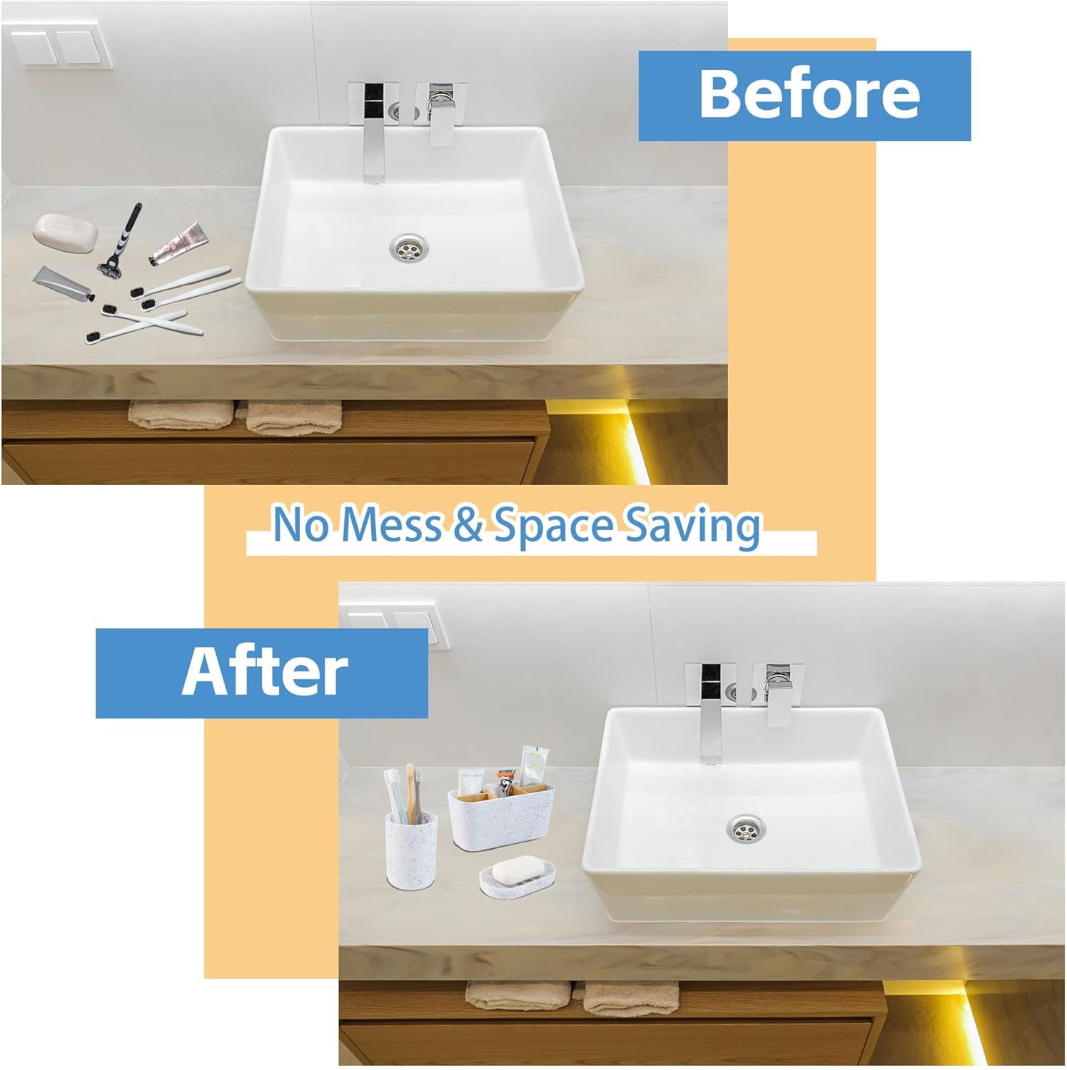 The white bathroom accessories can help you or your children organize their toothbrushes and toothpaste in an orderly manner after brushing, keeping the bathroom sink neat and clean.