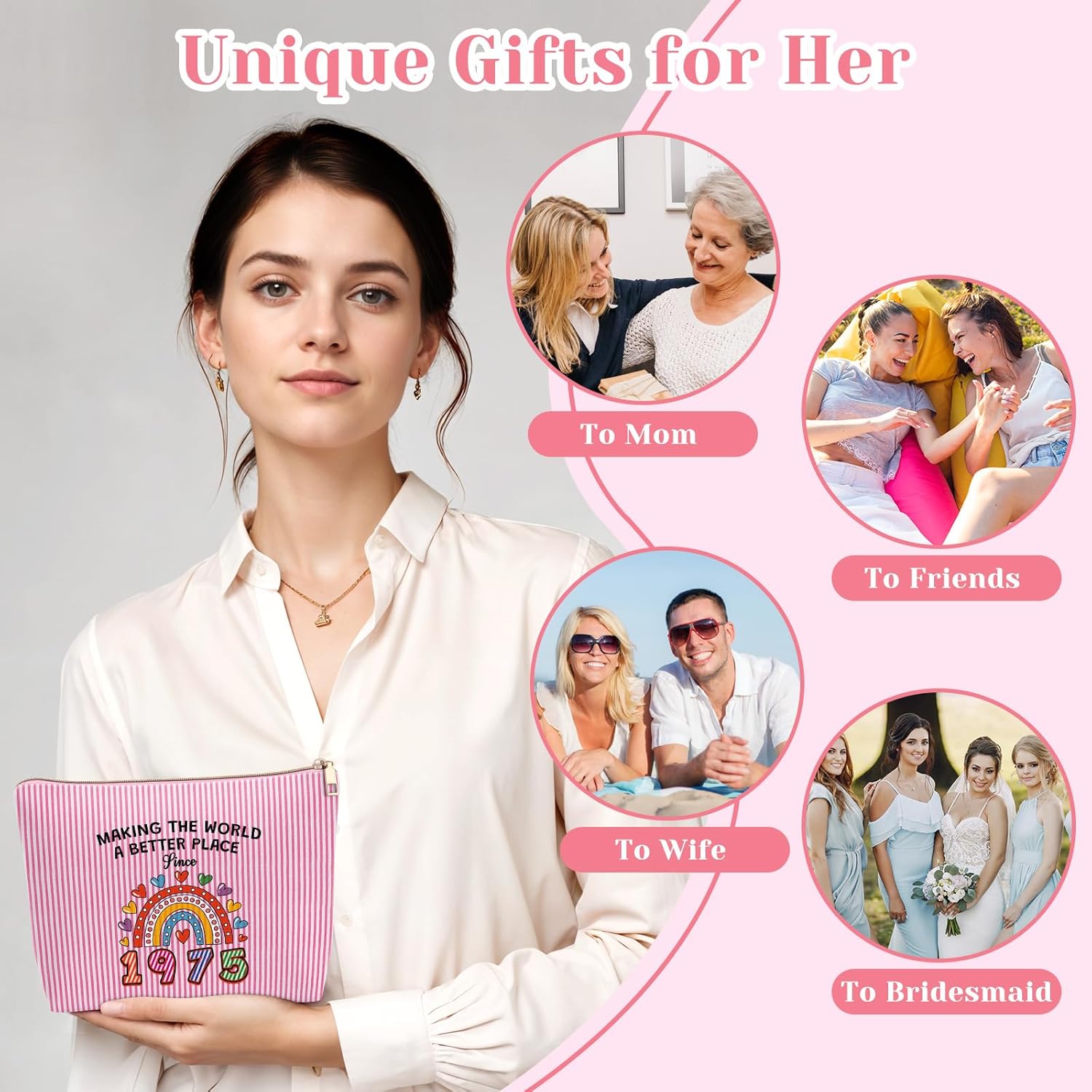 50th Birthday Gifts for Her: commemorate 50 years old birthday gifts for women in an amazing lady’s life.help daughter, friend, wife, mom celebrate happy 50th birthday gifts for women with this simple and elegant women birthday gift. she can use this birthday cosmetic bag to reminisce about the good old days, the perfect milestone birthday gift for sister.
