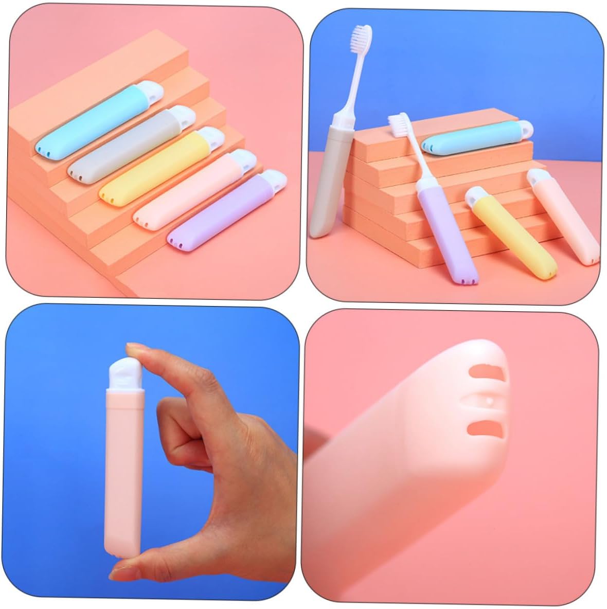5Pcs Portable Folding Toothbrush Soft Bristles Ergonomic Handle Travel Toothbrush for Adults Camping Daily Oral Care Gentle Gums Convenient Compact Design Random Color