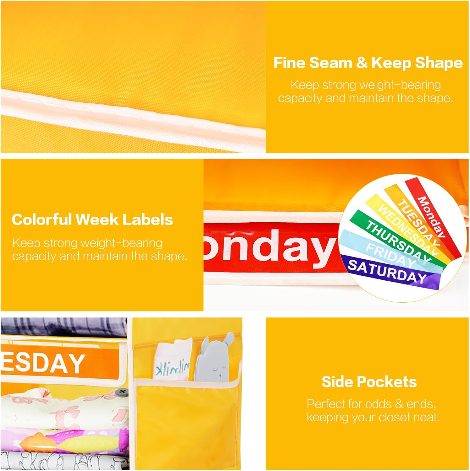 6-Shelf Weekly Closet Hanging Organizer for Kids, YOCOMEY 6-Grid Days of the Week Baby Kids Clothing Organizer Monday through Saturday, Foldable Oxford Cloth Closet Clothes Weekday Storage (New Yellow