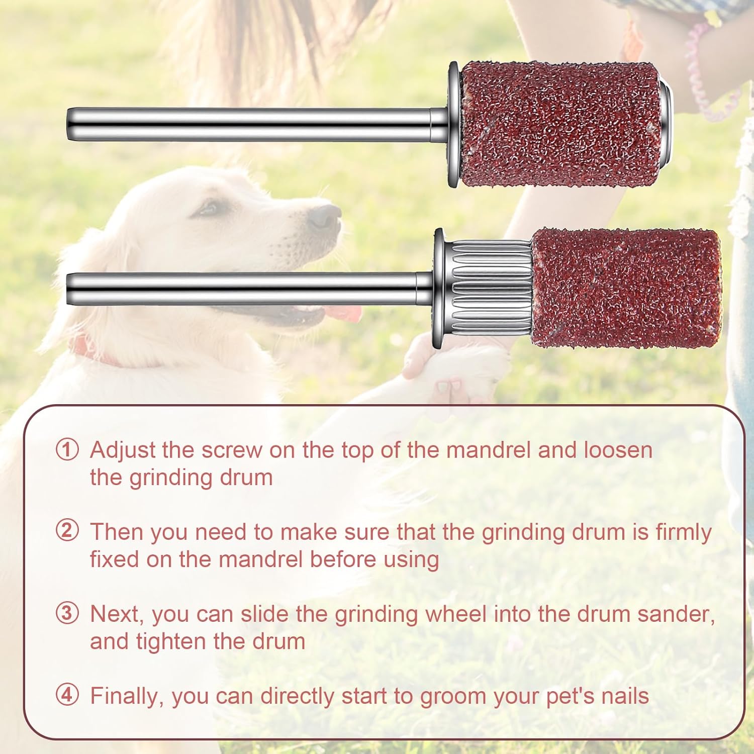 Effortless Replacement Process: Simplify your grooming routine with our intuitive replacement system that requires no technical expertise. The straightforward installation involves just three simple steps: loosen the mandrel screw, remover the old sanding band, and attach the new one securely. This user-friendly design saves valuable time and eliminates frustration, enabling pet owners to maintain their grooming equipment efficiently and absorbed in providing their pets with a comfortable, grooming experience