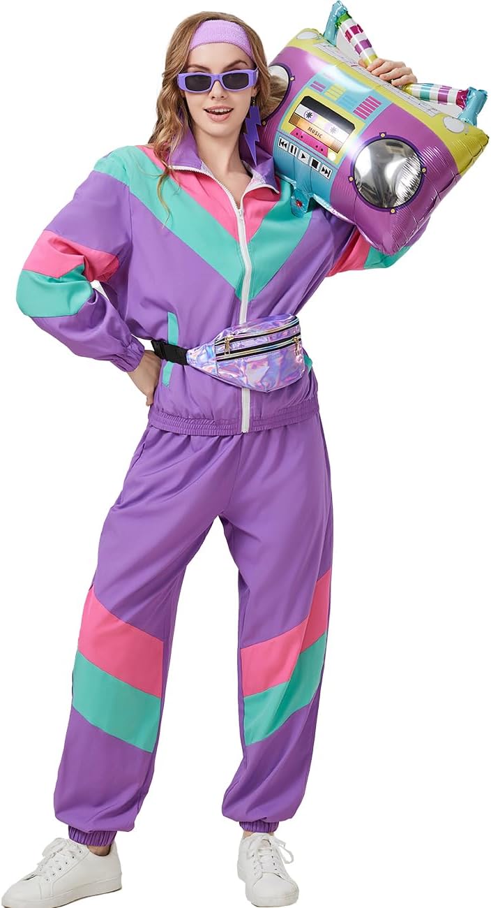 80s Tracksuit for Women Retro Windbreaker Outfit 90s Color Block Sportswear Set with Jacket Sweatpants
