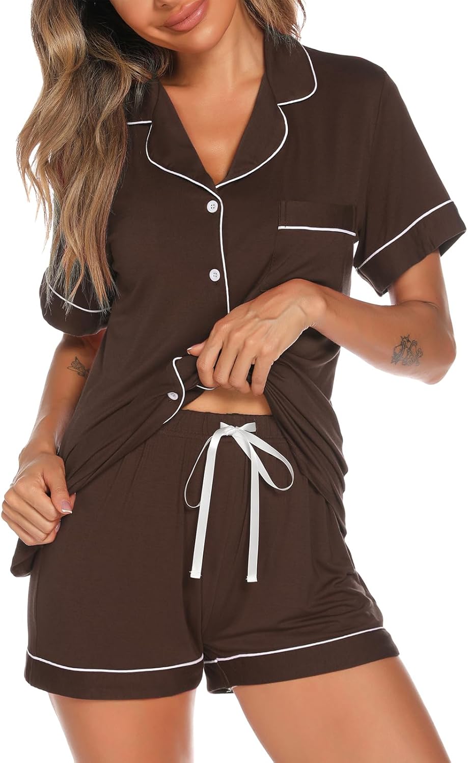 Aamikast Button Up Pajama Set for Women Shorts Short Sleeve Knit Sleepwear 2 Pice Pjs Sets