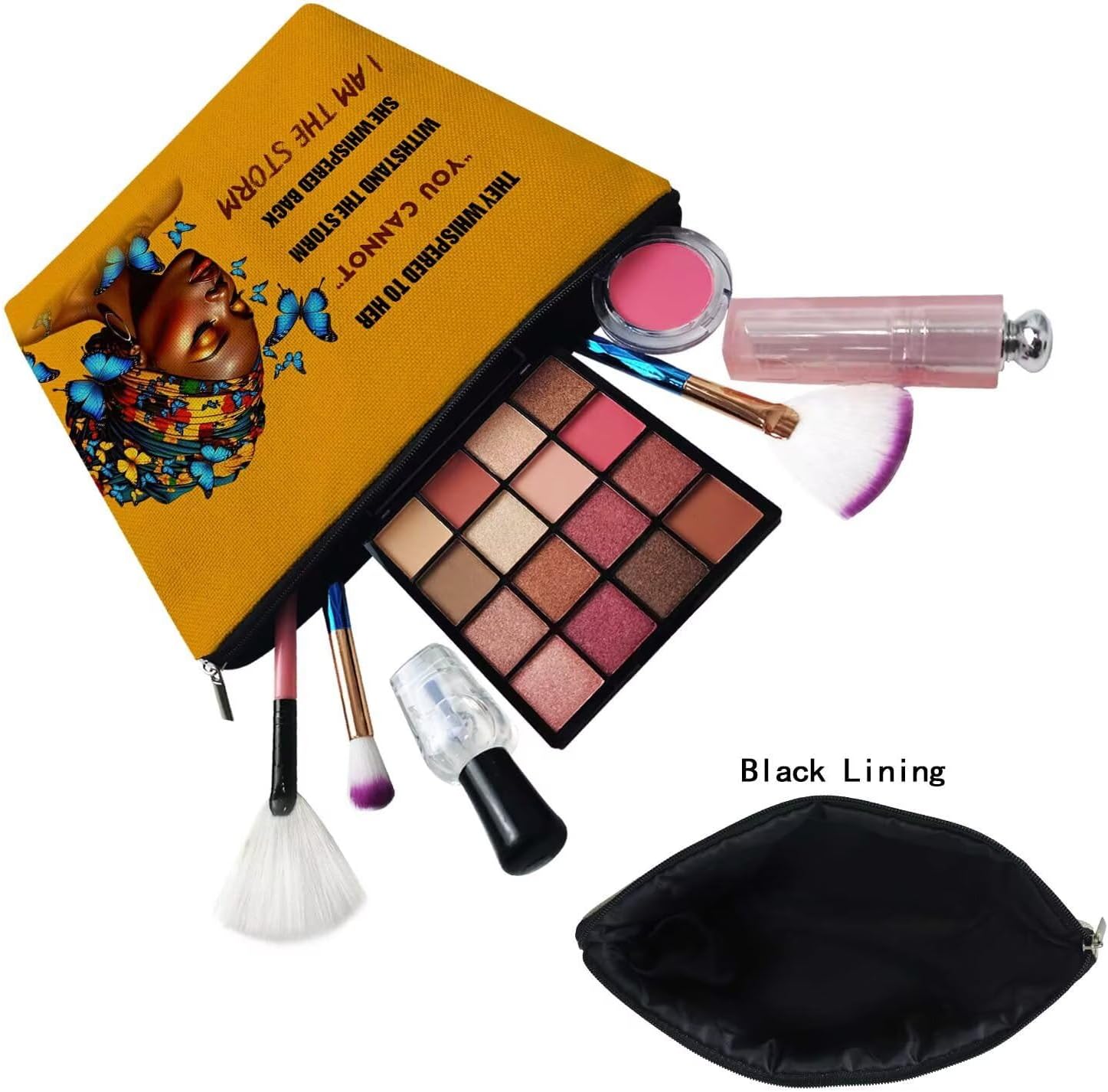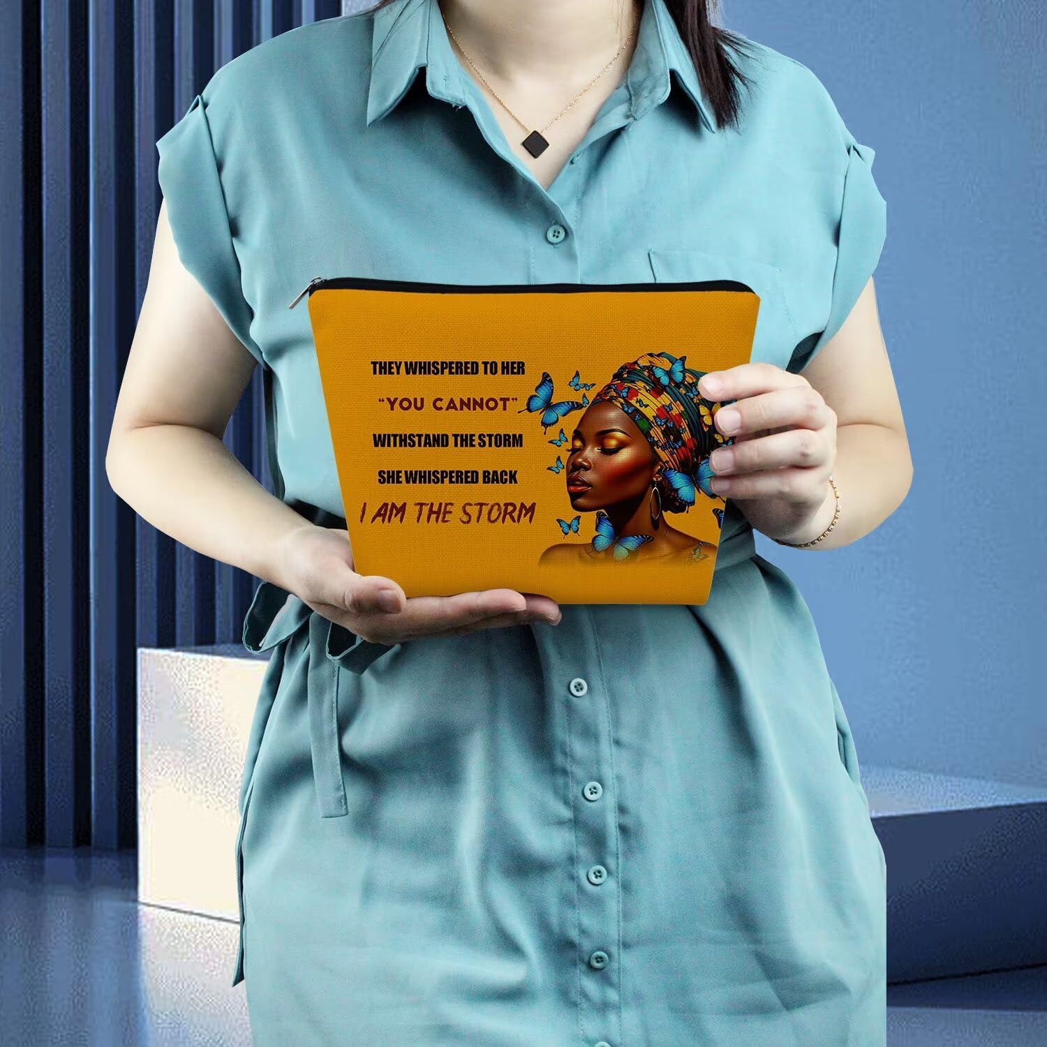 African American Makeup Bag Cute Small Canvas Organizer Zipper Pouch I Am The Storm Cosmetic Bag Inspiring Birthday Present for Black Women Friends