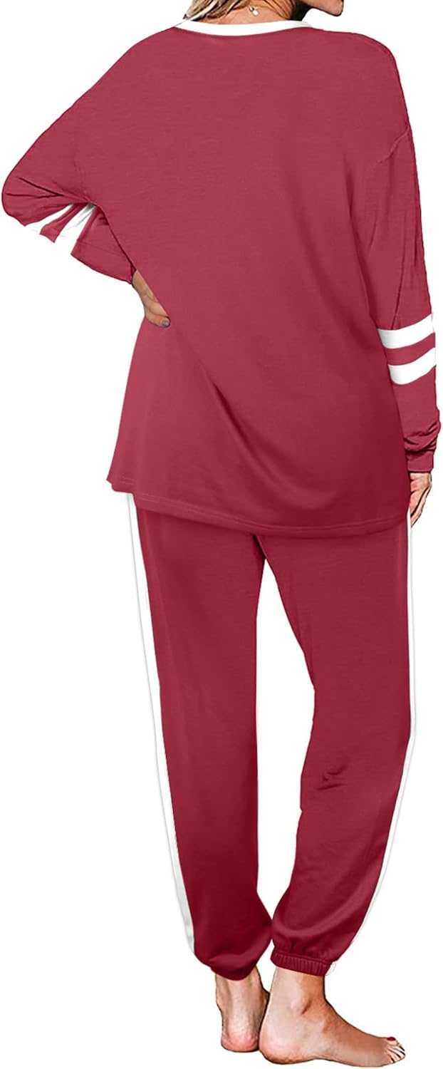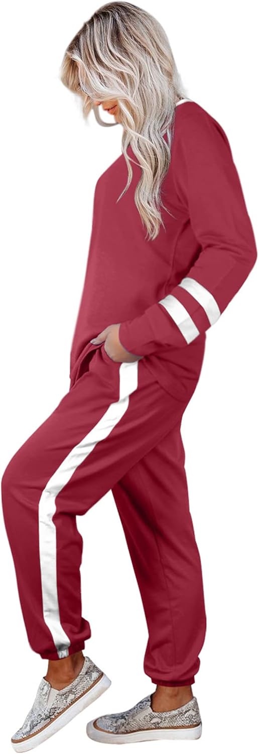 • Striped sleeves sweatshirts and color block crewneck design can satisfy all your daily collocations.A Must-Have women comfy loungewear sets in Your Wardrobe! Makes You Looks More Stylish and Elegant!