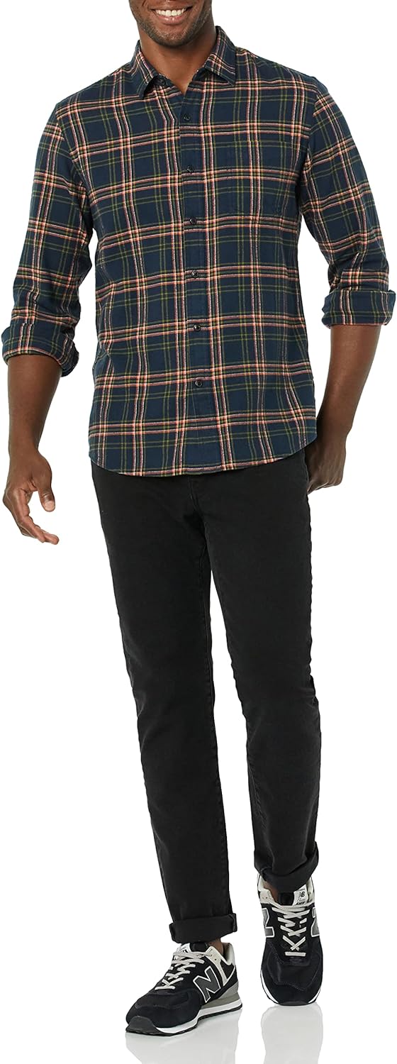 Amazon Essentials Men’s Flannel Shirts Long Sleeve, Slim-Fit Button Down Plaid