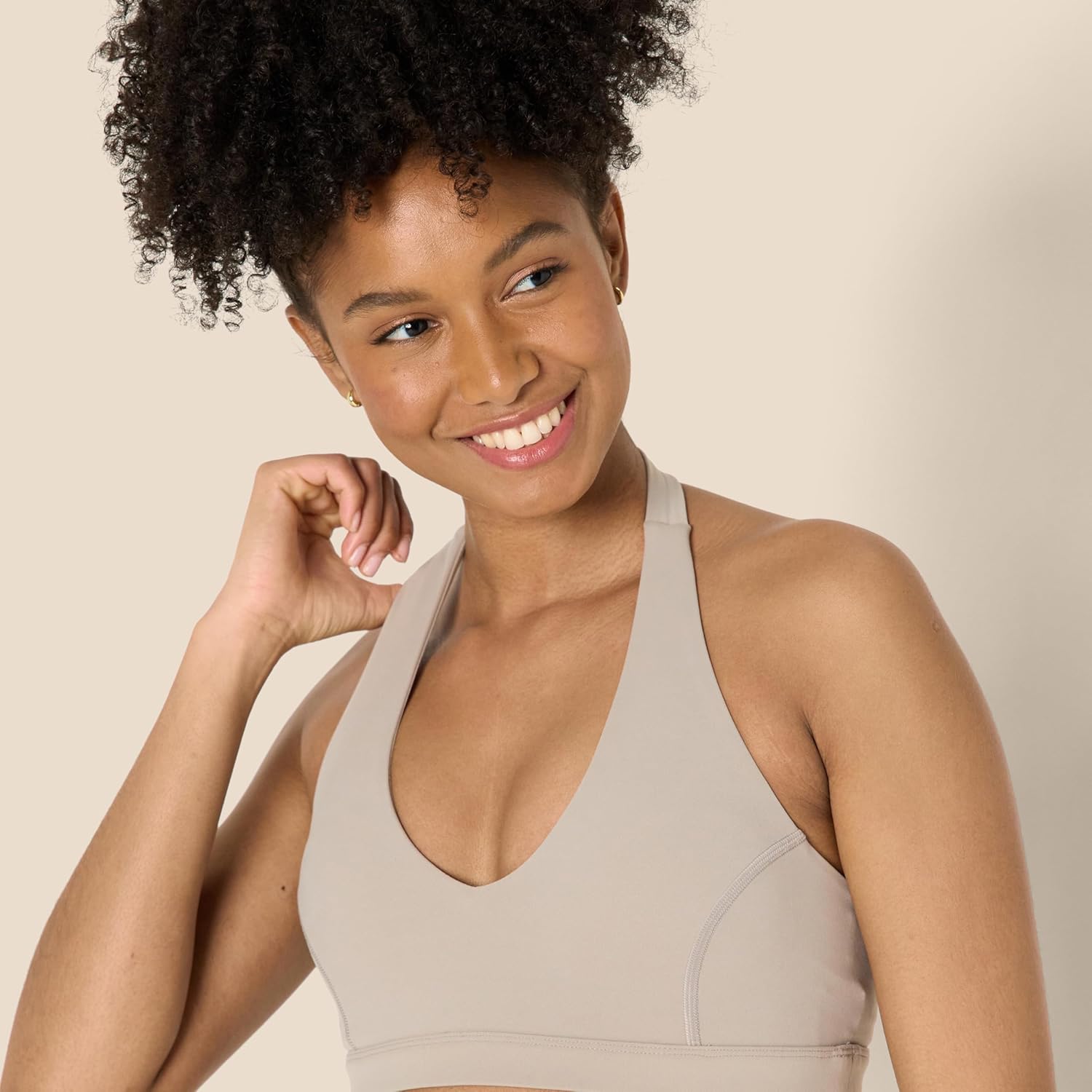 Amazon Essentials Women’s Active FormFlex Buttery Soft Light Support Halter V-Neck Sports Bra
