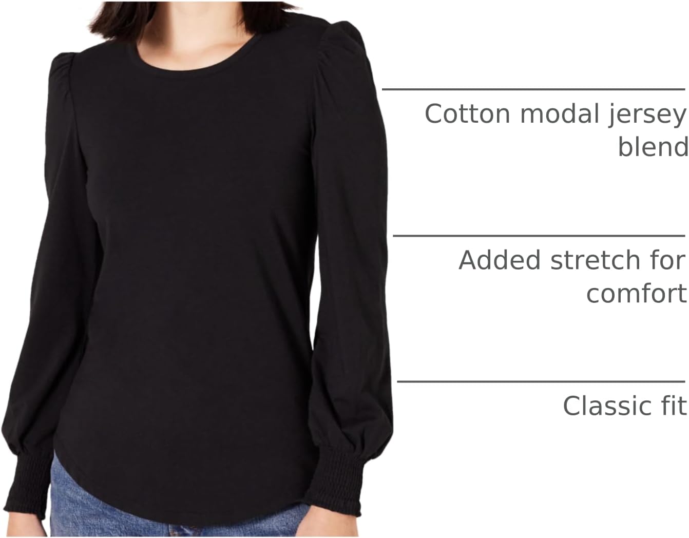 Amazon Essentials Women’s Long-Sleeve Crewneck Smocked Cuff T-Shirt