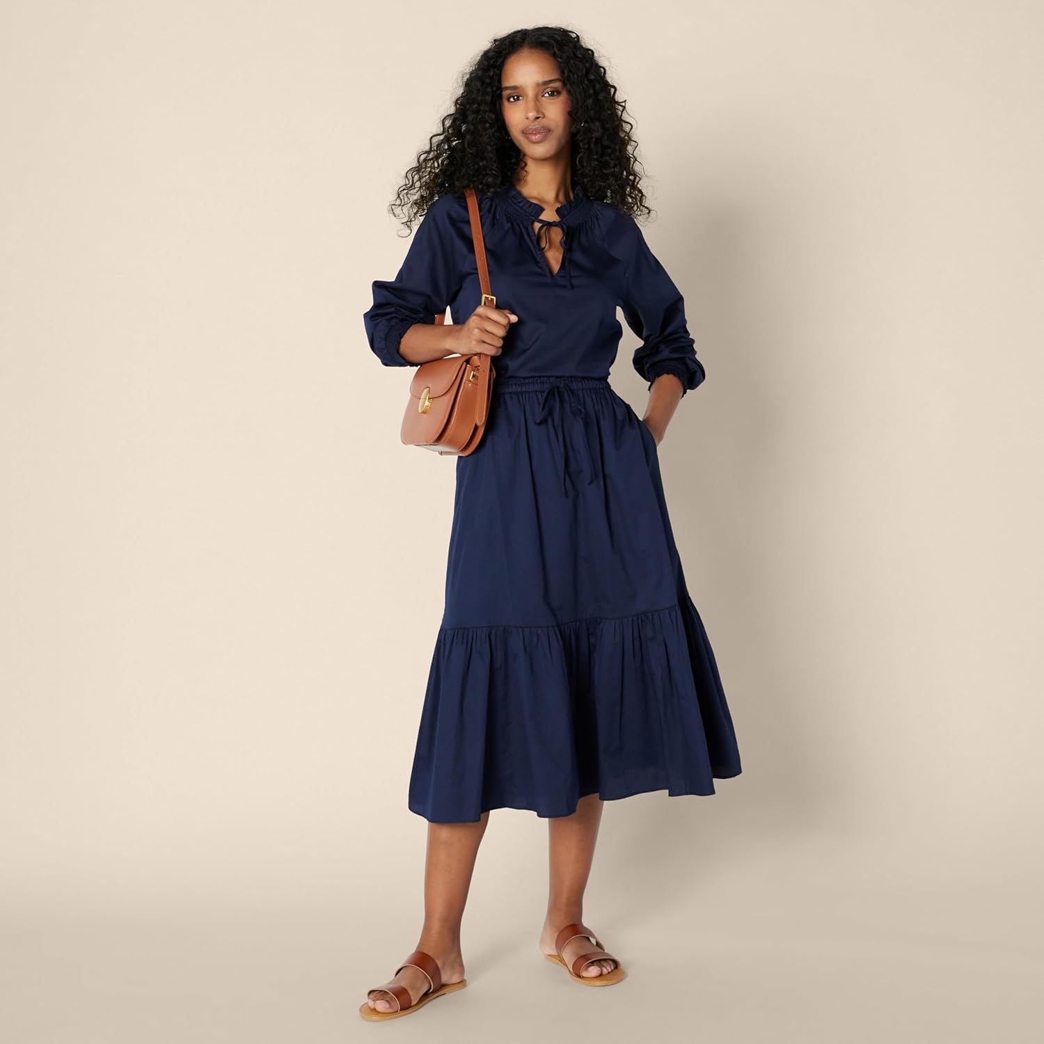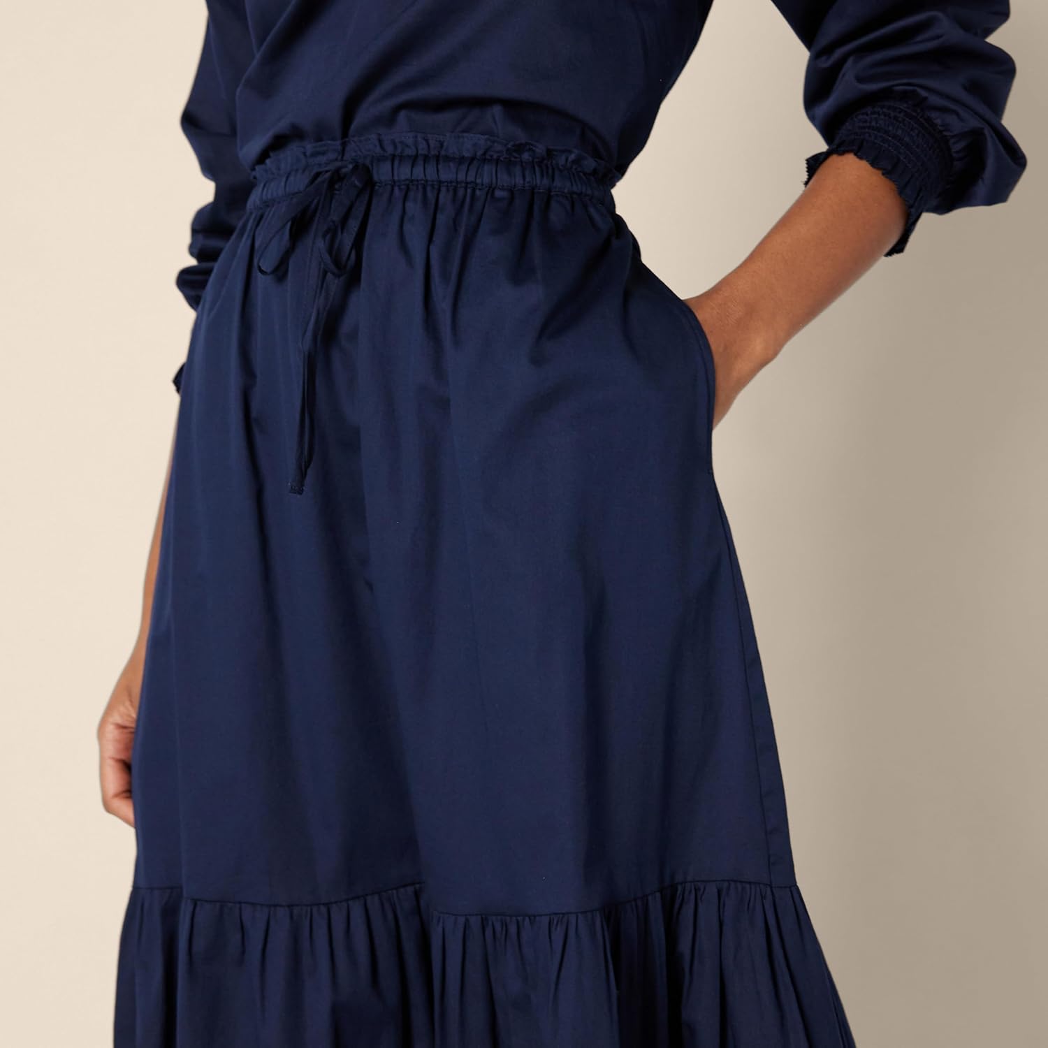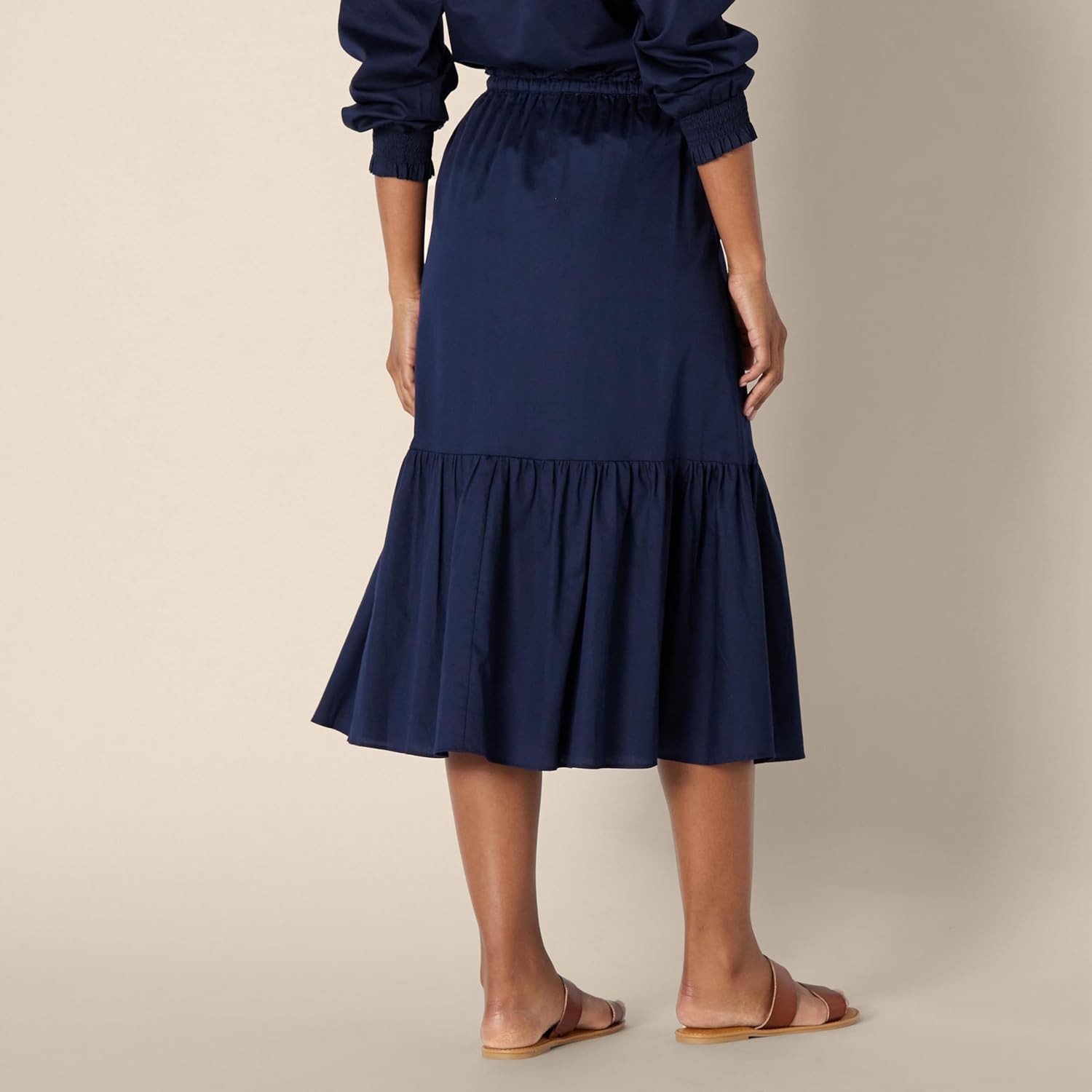Amazon Essentials Womens Mid-Rise A-line Cotton Sateen Tiered Midi Skirt (Top Sold Separately)