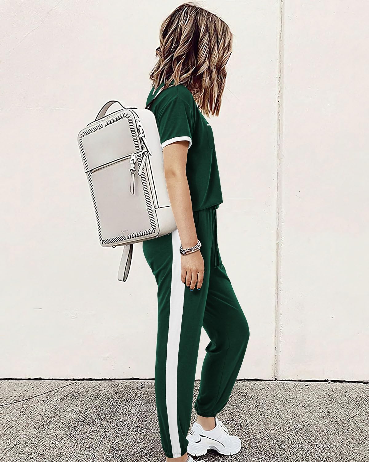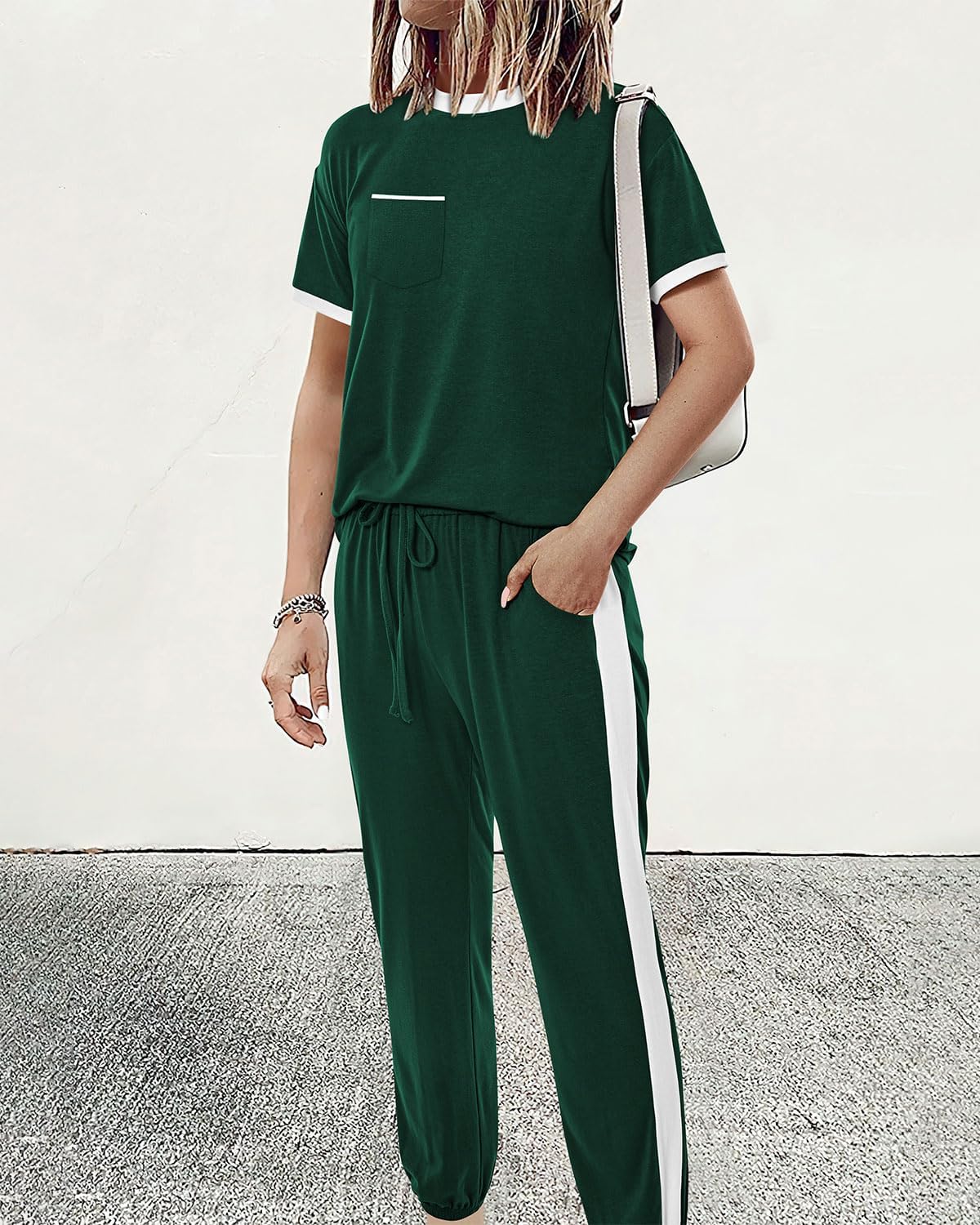 2 Piece Short Sleeve Sets For Women/ Summer Pants For Women 2025/ Womens 2 Piece Lounge Set with Pockets/ Elastic Waisted Jogger Sets For Women/ Loose Fit Sweatsuit Set