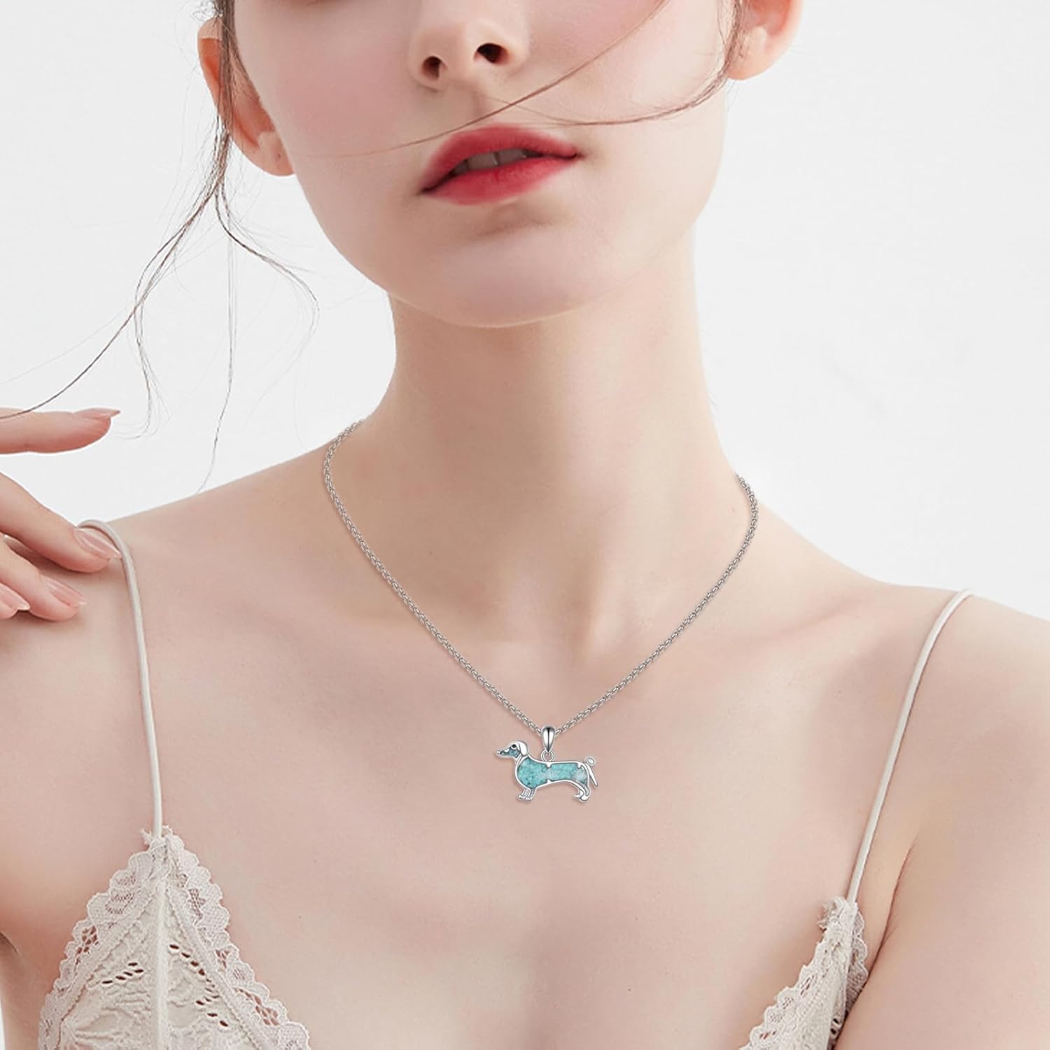 HKPATOP Turquoise Dog/Owl/Turtle Necklace Sterling Silver
