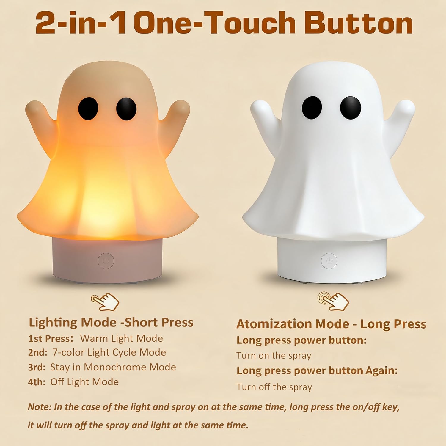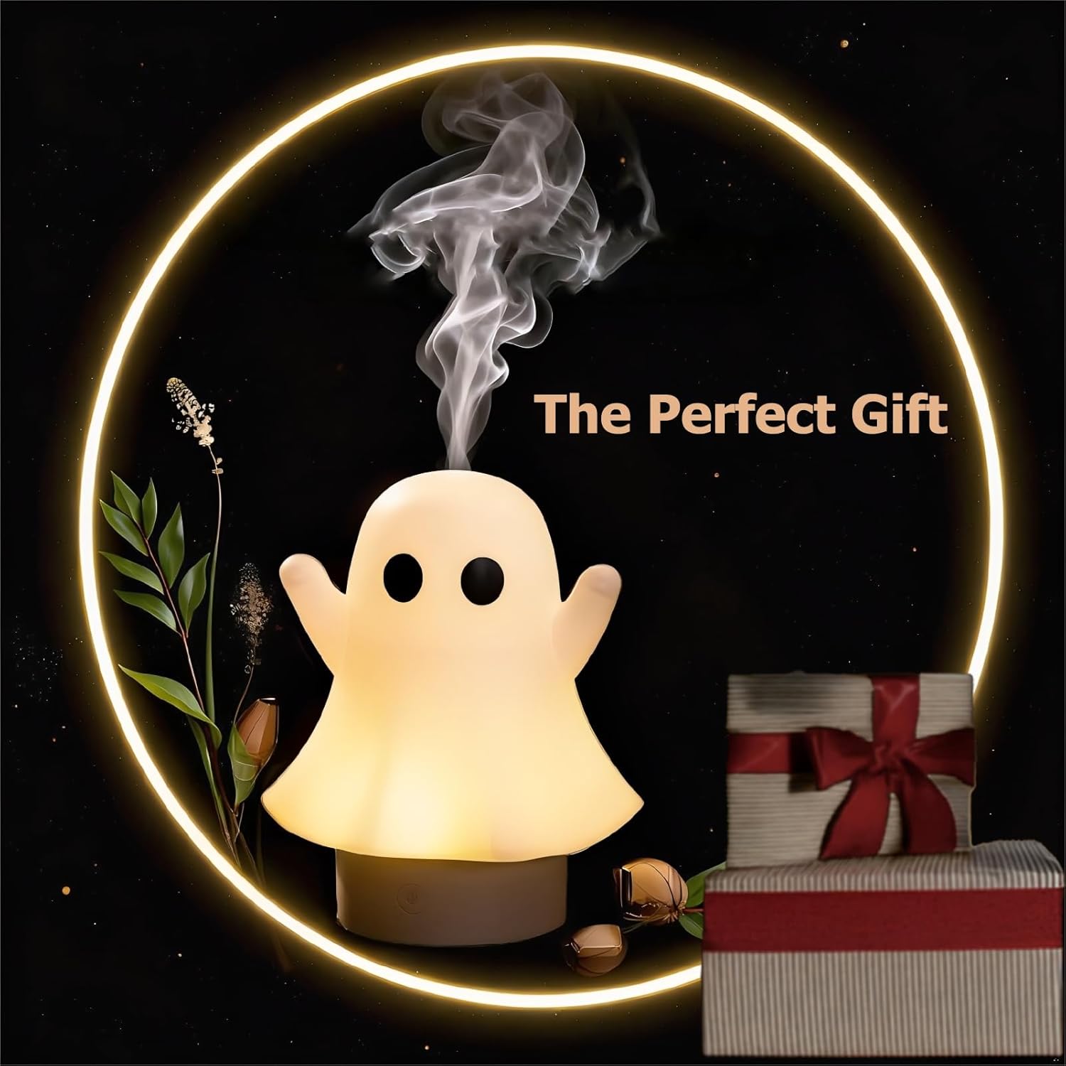 CHARMING GHOST DESIGN WITH SOFT MIST & MOOD LED: A whimsical ghost silhouette emits a gentle white mist, acting as both a humidifier and essential oil diffuser. Perfect as a decorative diffuser for home, it fits seamlessly into bedrooms, living rooms, or gift settings.